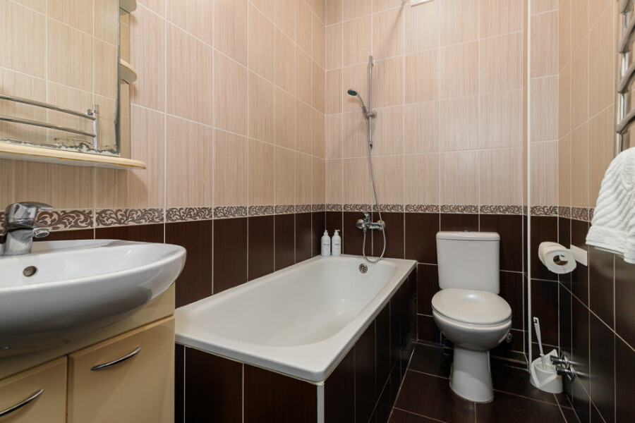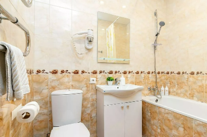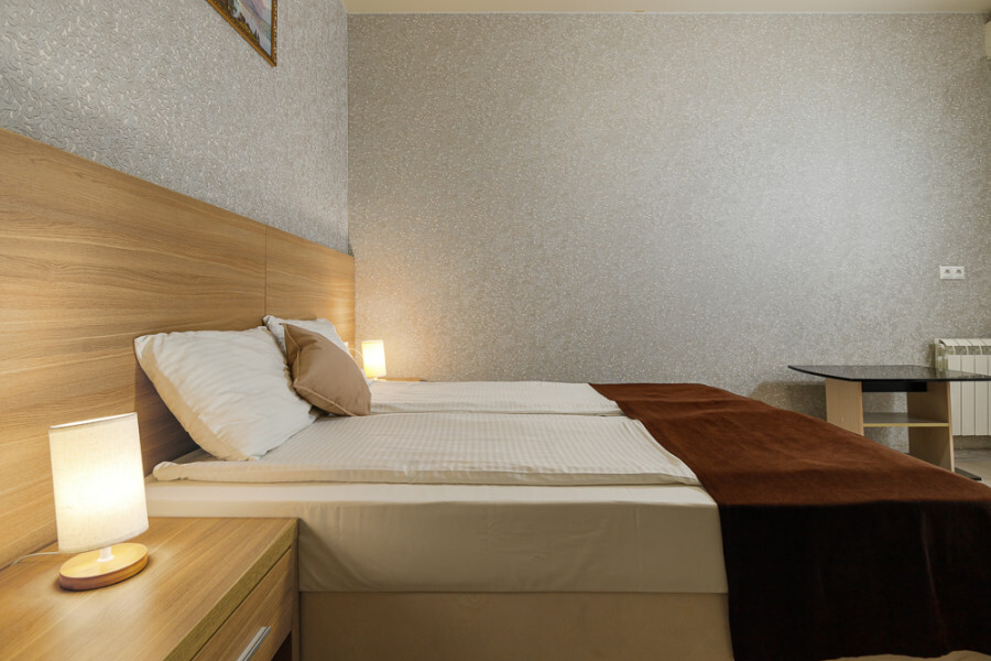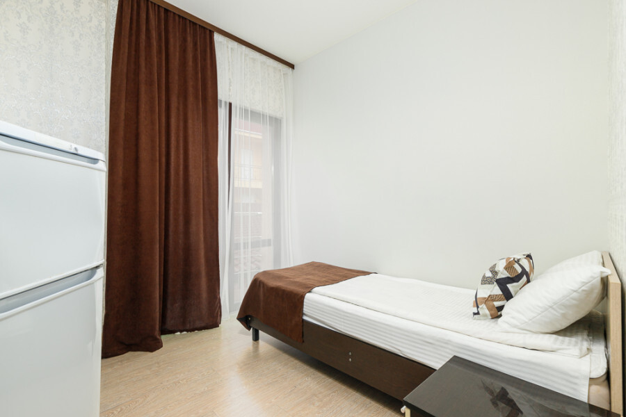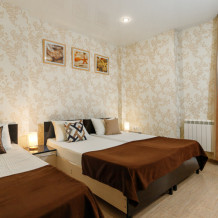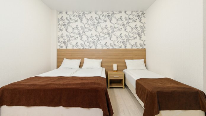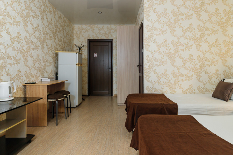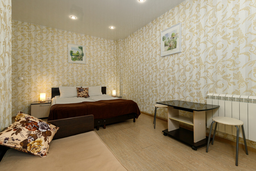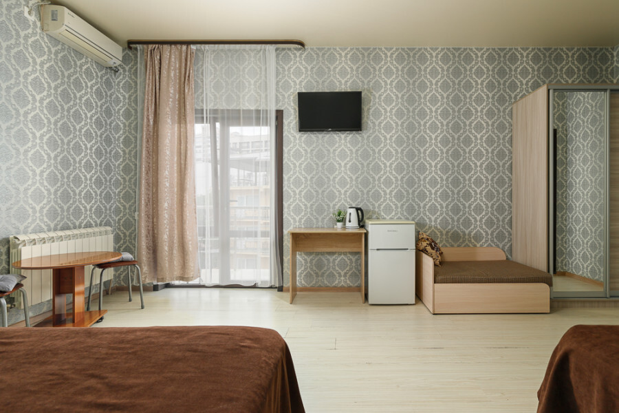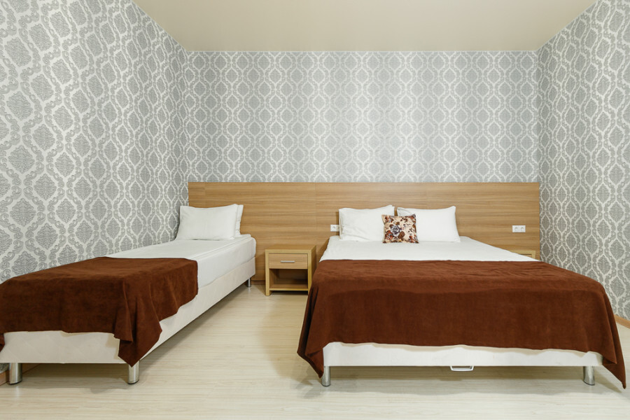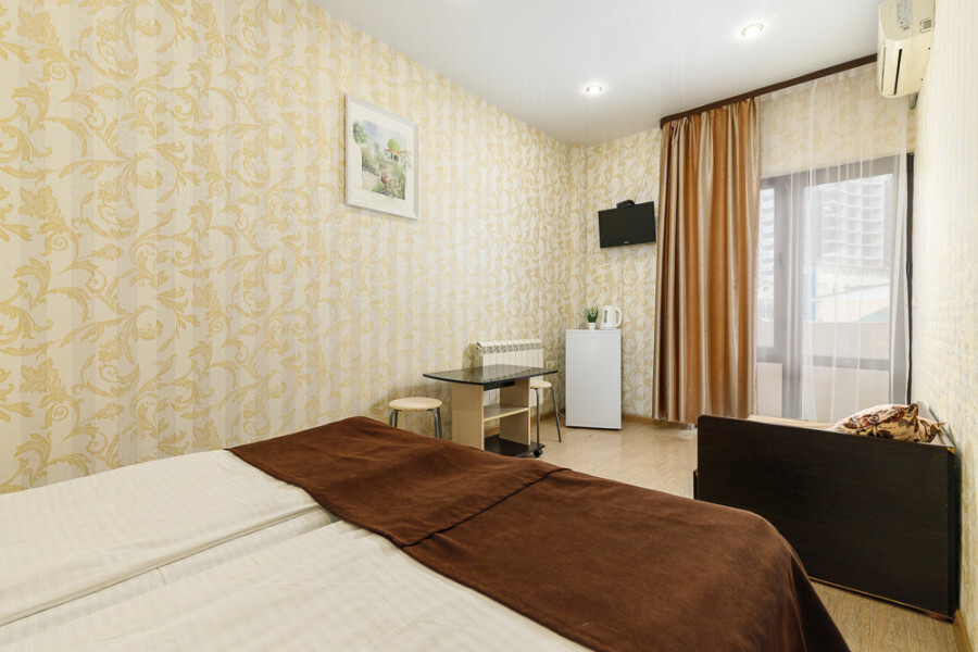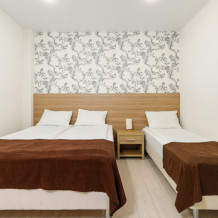 Комфортный 3-местный номер с 2 раздельными кроватями и дополнительным местом (диван-софа для одного гостя). Оснащён сплит-системой, электрическим чайником и спутниковым TV. Подойдет для размещения 3 человек. Датчик угарного газа обеспечивает безопасность. Напольное покрытие - ламинат. В ванной комнате установлена ванна и есть все необходимые туалетно-косметические принадлежности, фен и полотенца. С балкона открывается вид на город.