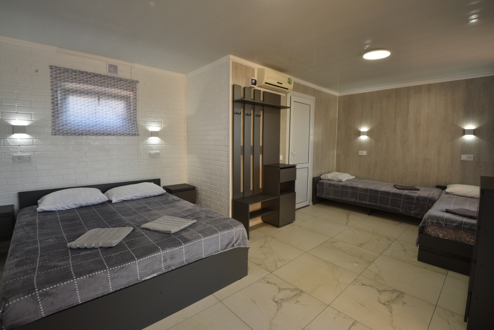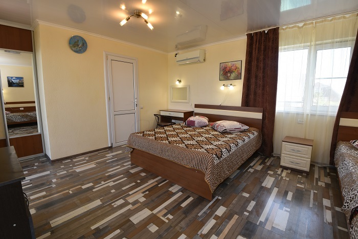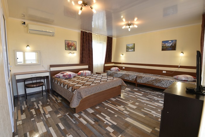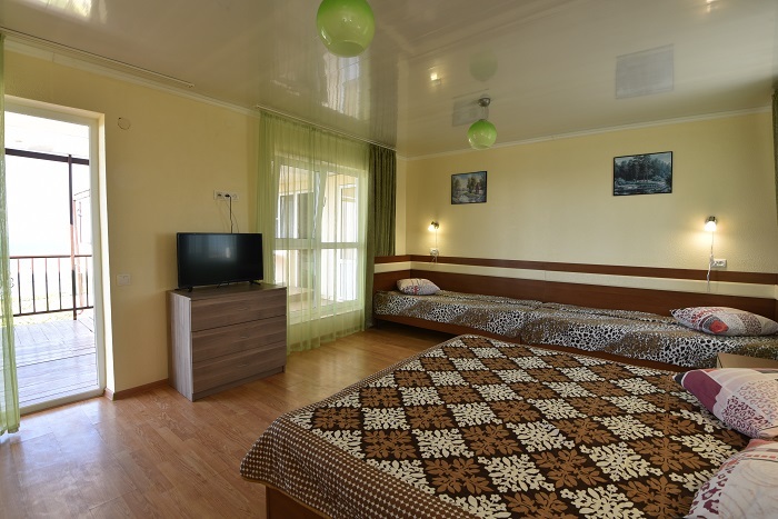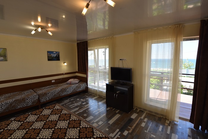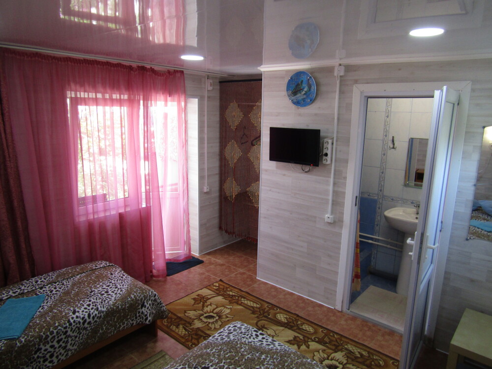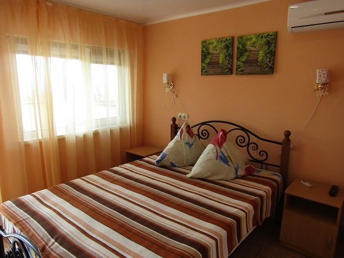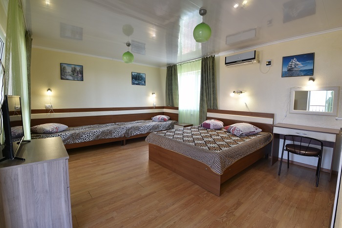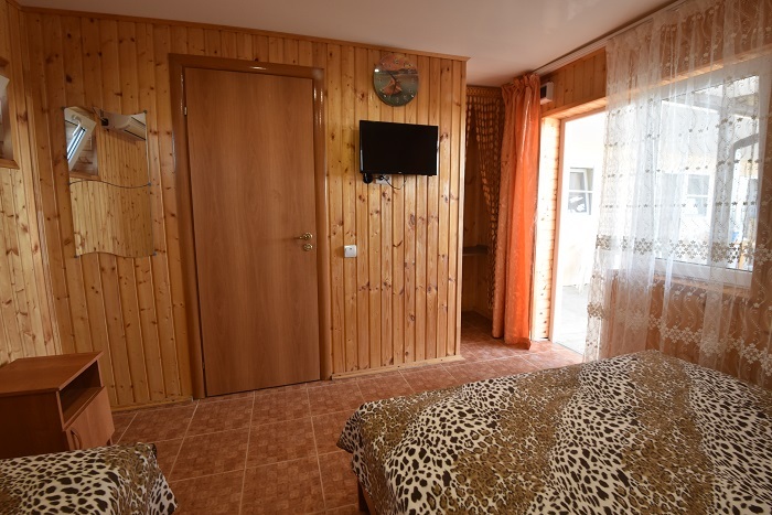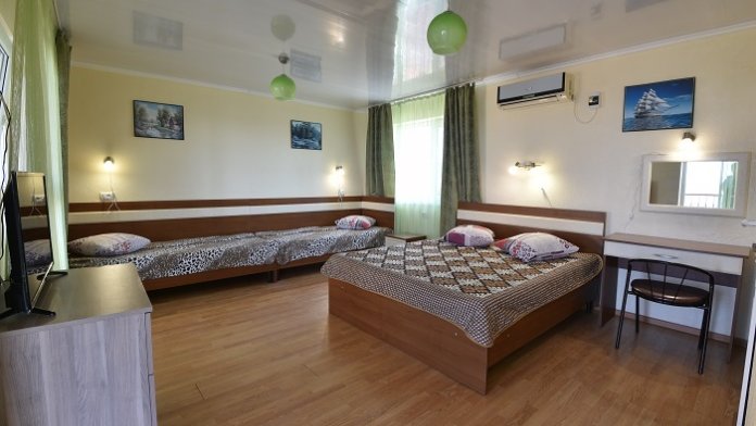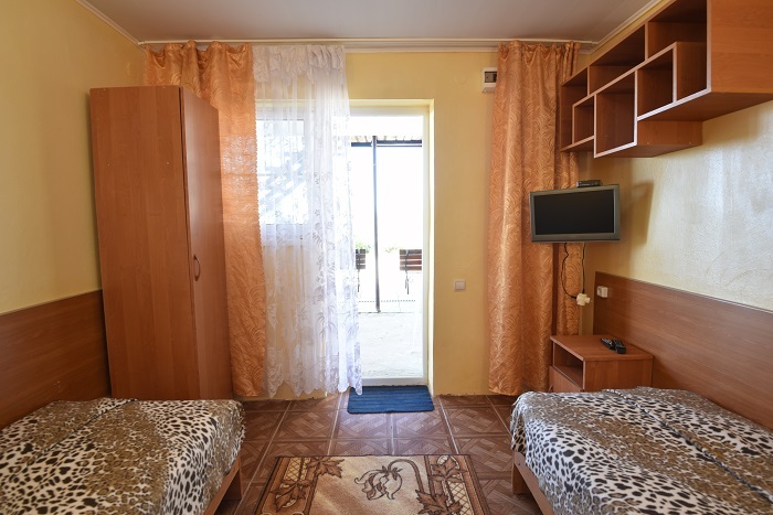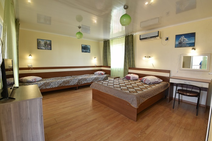 К услугам гостей комфортные номера 2,3,4,5-местные. Номера расположены на первом и втором этажах двух жилых корпусов. Все номера имеют отдельный вход. В каждом номере имеется санузел с душем (горячая, холодная вода круглосуточно), сплит-система (кондиционер), телевизор, необходимая мебель. Номера, расположенные на участке № 1 имеют вид на море.