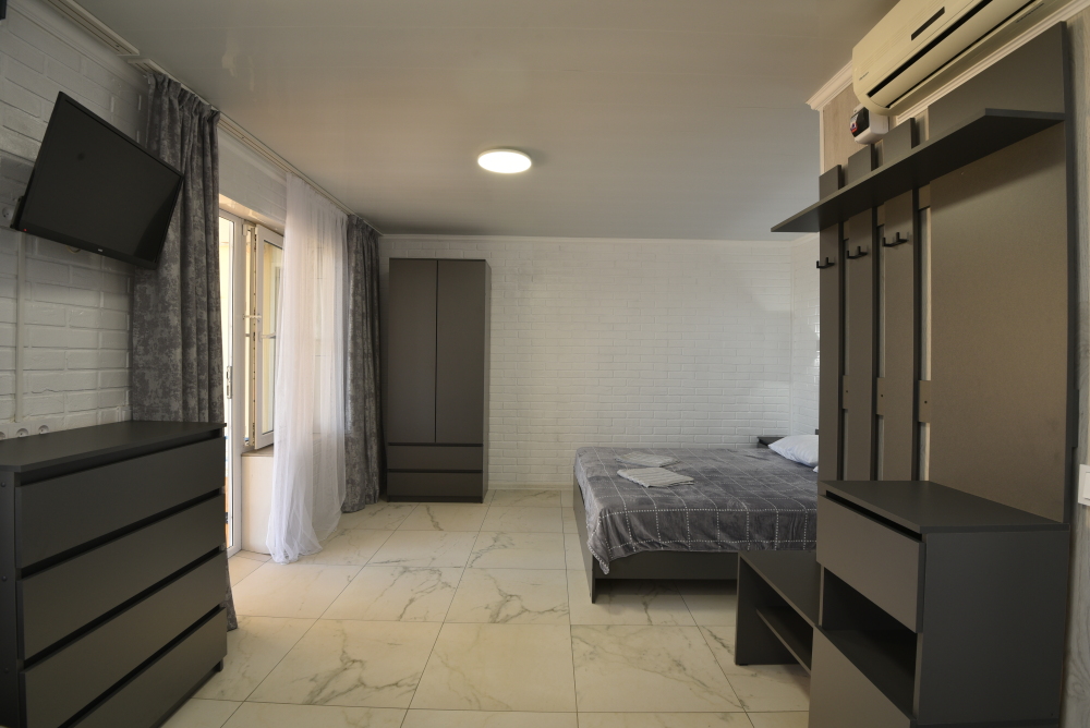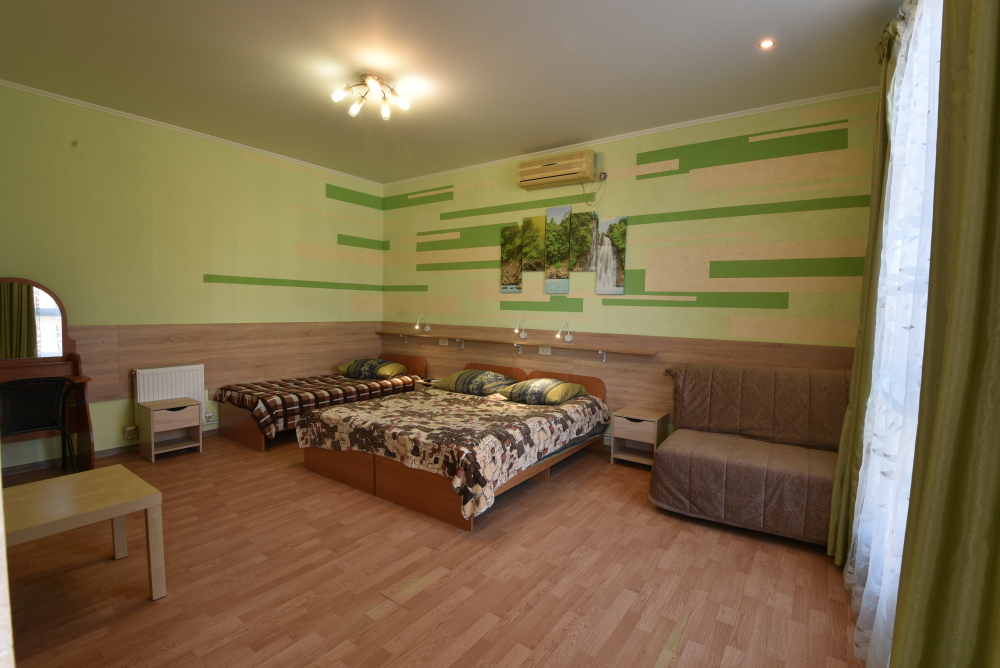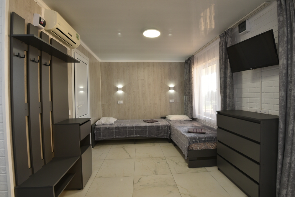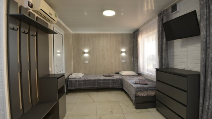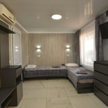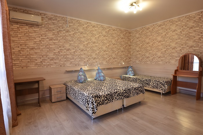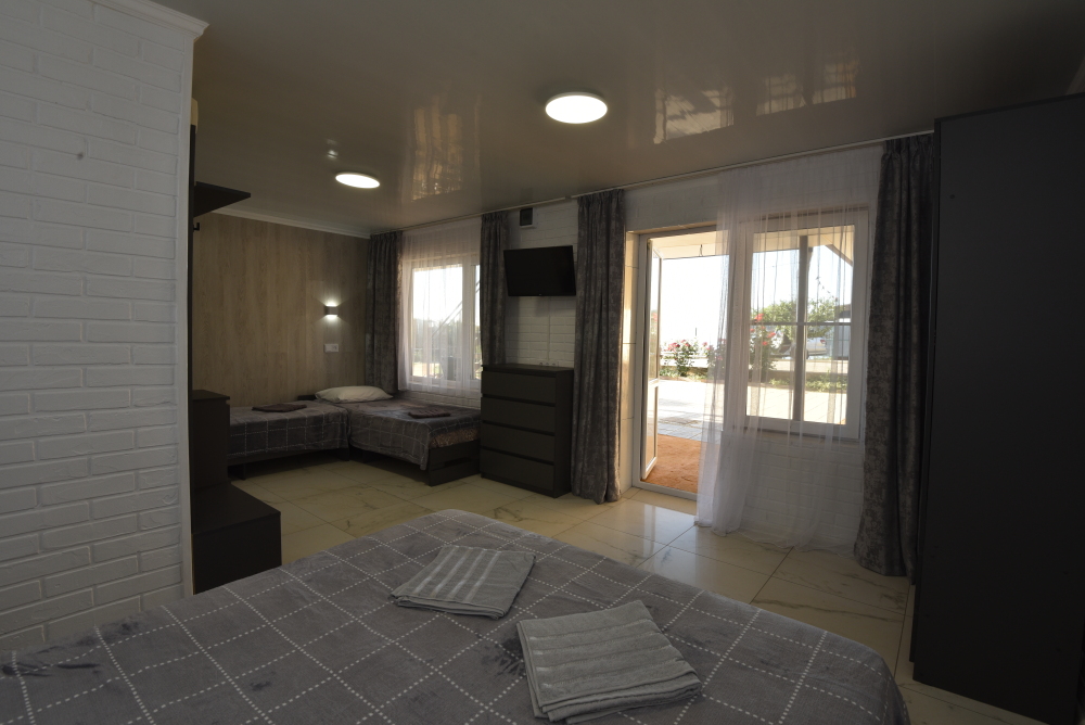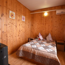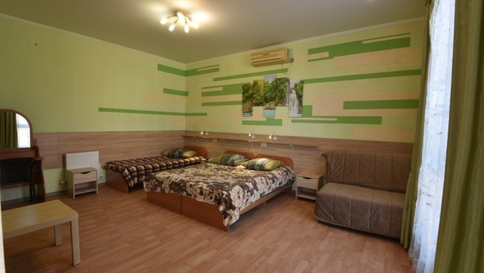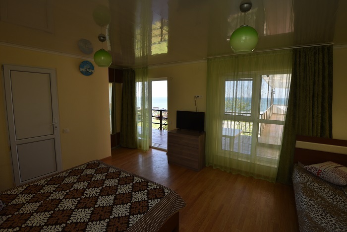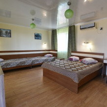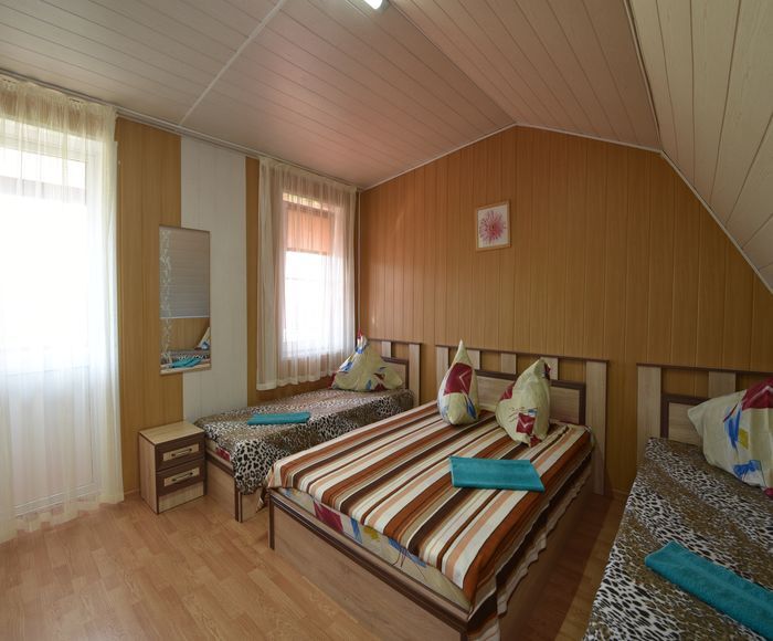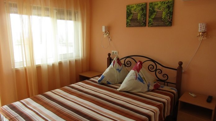 К услугам гостей комфортные номера 2,3,4,5-местные. Номера расположены на первом и втором этажах двух жилых корпусов. Все номера имеют отдельный вход. В каждом номере имеется санузел с душем (горячая, холодная вода круглосуточно), сплит-система (кондиционер), телевизор, необходимая мебель. Номера, расположенные на участке № 1 имеют вид на море.