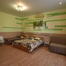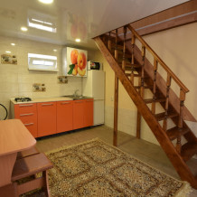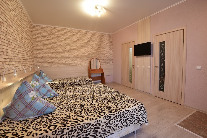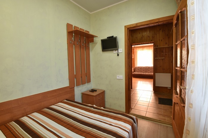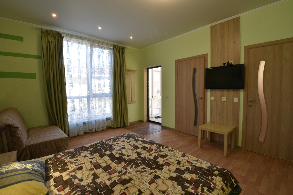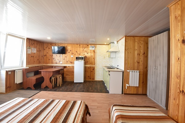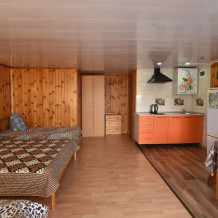 Двухкомнатная квартира и двухкомнатные апартаменты - представляет собой самостоятельную часть дома с отдельным входом состоит из двух комнат, кухни, санузла, предназначена для проживания до 5 человек, возможно размещение дополнительного места, расположена на участке № 2.