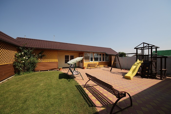 Домовладение расположено в западной части станицы, в тихом, спокойном месте, в частном секторе, недалеко от пляжа. Прямой выход к центральному пляжу станицы Голубицкой занимает около 10 минут (600 метров до пляжа), дорога к пляжу проходит через знаменитое грязевое озеро. На пляже много развлечений, кафе, столовые, ночные клубы, недалеко от домовладения есть небольшой продуктовый магазин, столовая.