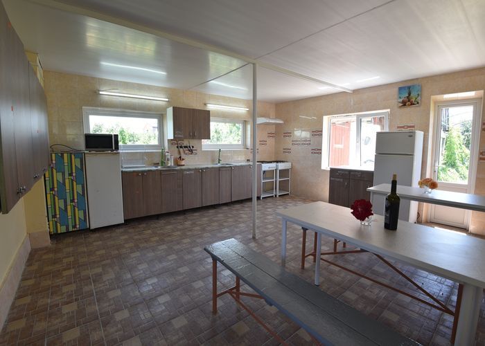 На территории есть общая кухня для номеров без кухонь с холодильниками, плитами, мойками и всем необходимым инвентарем. На участке № 1 около номеров установлены столики со стульями. На участке № 2 есть навес для отдыха на свежем воздухе (установлен телевизор). Территория озеленена, на обоих участках есть место для приготовления шашлыка, детская площадка, парковка.