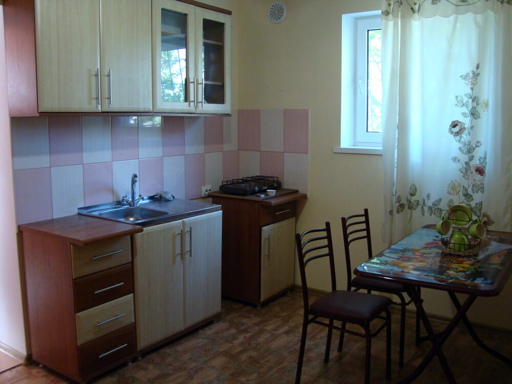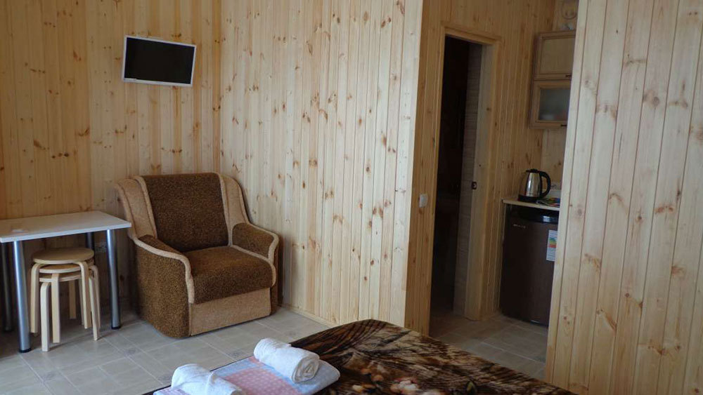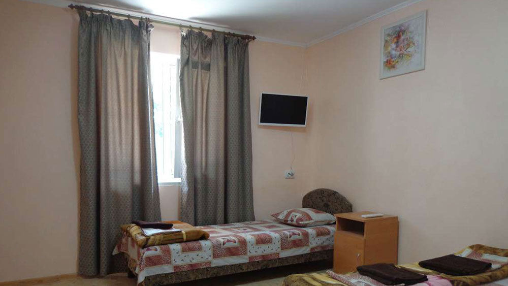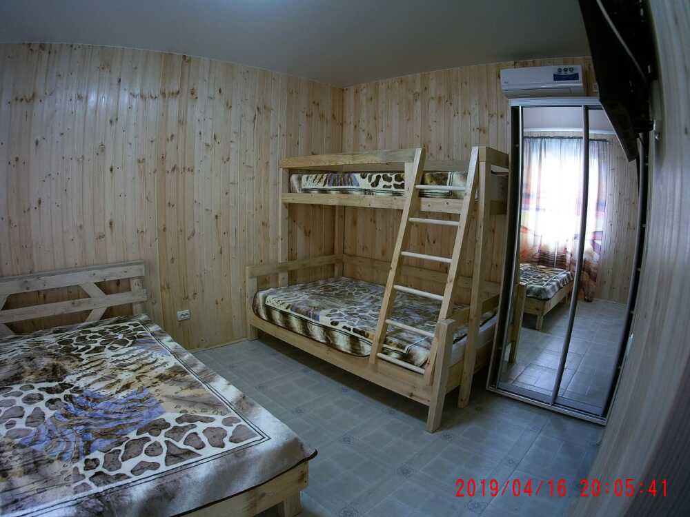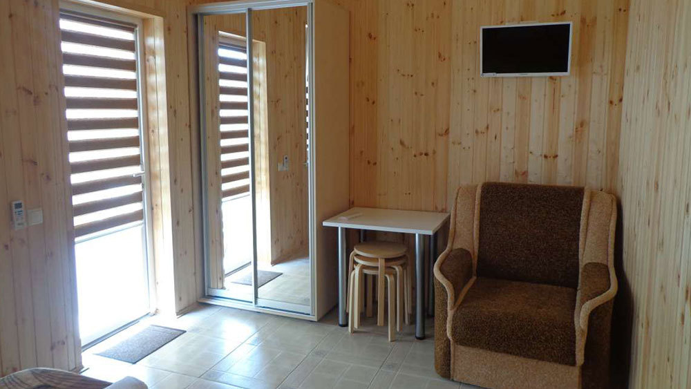 Каждый номер вместимостью 4+1 человека. Возможен вариант аренды всего корпуса целиком, как отдельно стоящего дома под ключ. Во дворе: парковка, беседка с мангалом, зеленая территория с фруктовым садом.