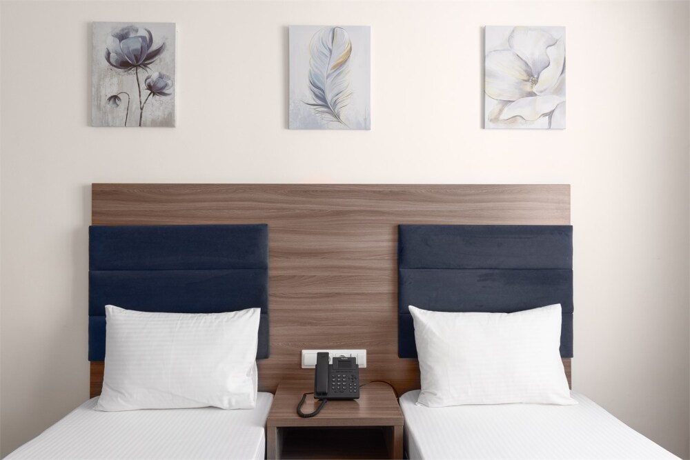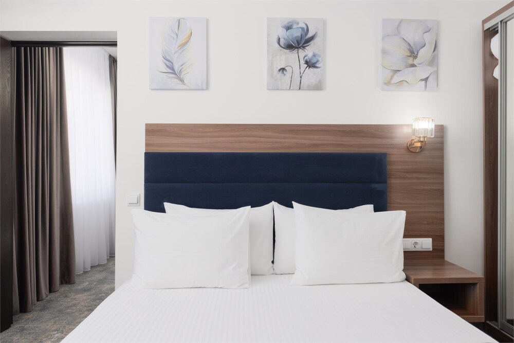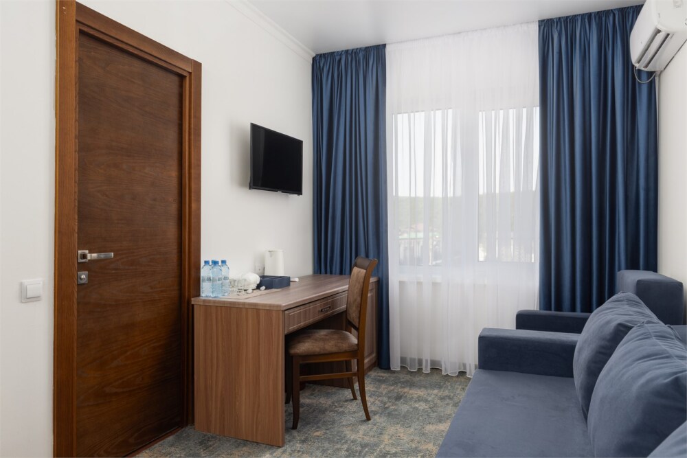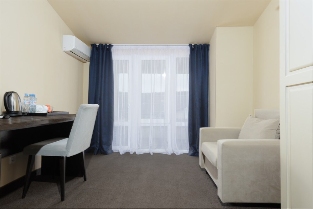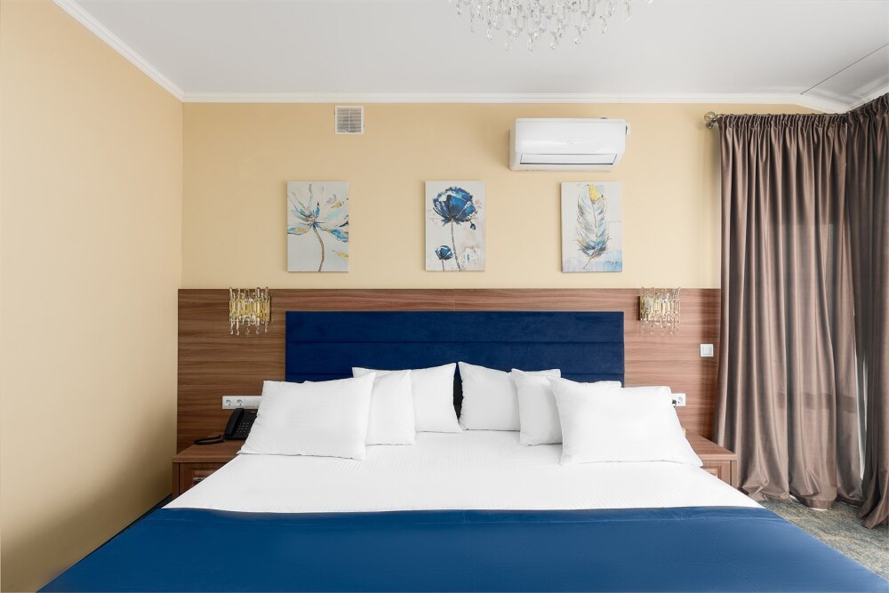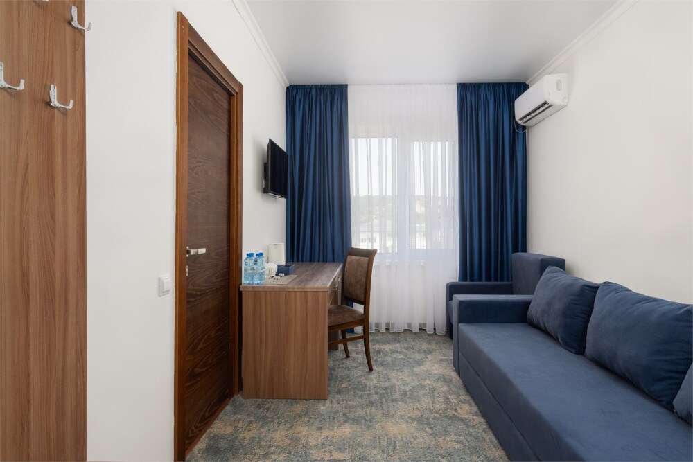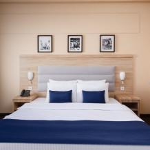 Номера Standard оснащены эргономичной мебелью, предусмотрено место для багажа, сейф. Ванная комната, фен, косметические принадлежности. Один ребёнок до 3 лет — можно без отдельного спального места.