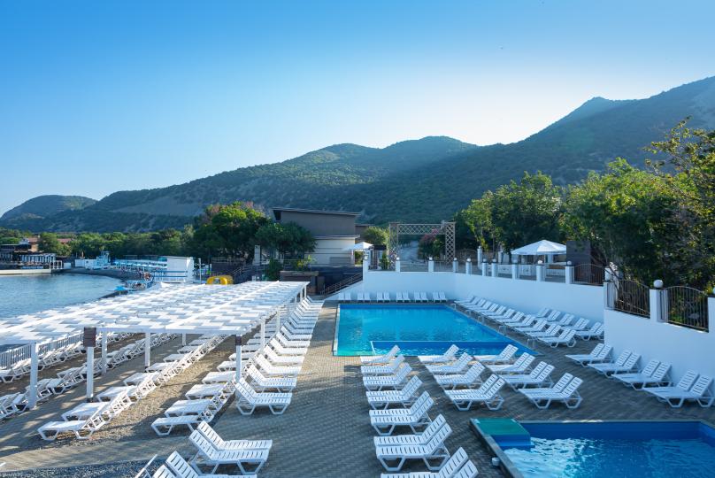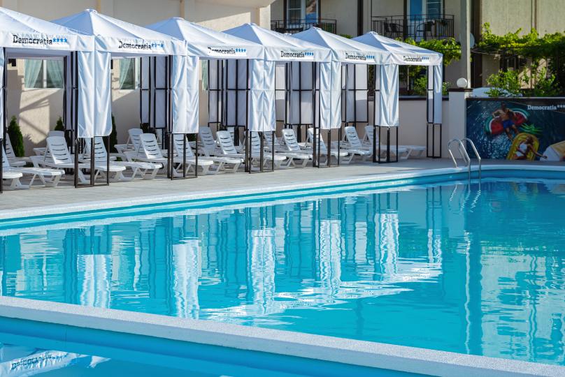На территории отеля в зоне отдыха расположен открытый подогреваемый бассейн площадью 330 м2 и предельной глубиной 1,5 м для комфортного купания. В бассейне находится бар с алкогольными и безалкогольными напитками, включенными в стоимость проживания. Для самых маленьких гостей отеля мы создали уютные открытые малые бассейны с предельной глубиной 0,5 м. Они отделены бортиками от большого бассейна.