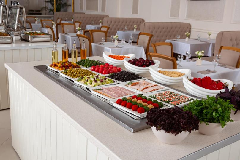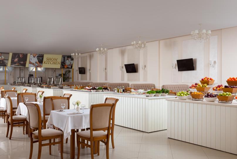 Питание в отеле организовано по системе ultra all inclusive и представляет собой 3 основных приема пищи в ресторанах шведской линии «Aphrodite» и «Olivia» и два промежуточных. Вас ждет широкий выбор мясных и рыбных блюд, гарниров, салатов, фруктов, десертов, а для маленьких гостей предусмотрена специальная детская шведская линия. В стоимость проживания включены алкогольные напитки локальных и иностранных производителей.