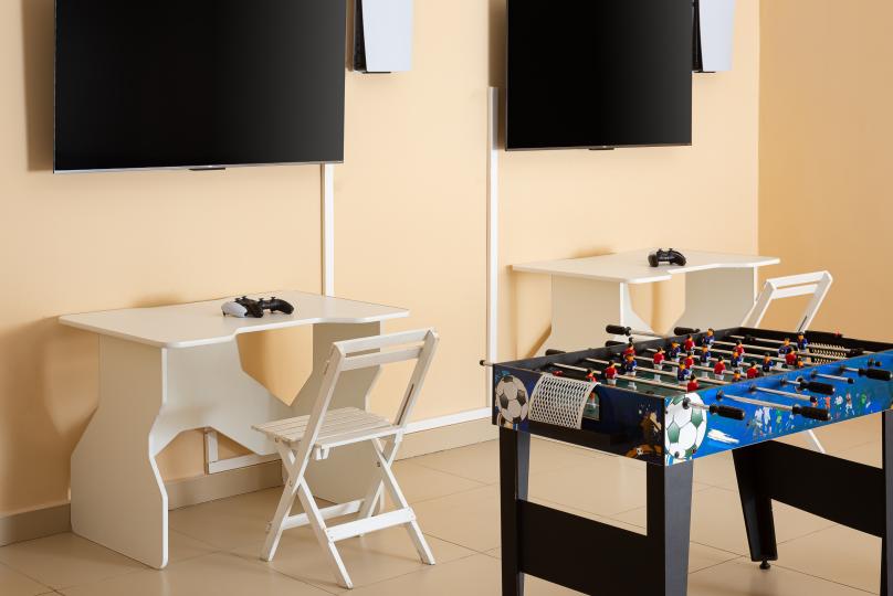 Luxe with balcony - большой трехкомнатный номер без межкомнатных дверей: двуспальная кровать, раскладной диван, кресло, ванная комната, фен, косметические принадлежности. В номере: сплит-система, мини-холодильник, телевизор, гардеробный шкаф, зеркало, рабочий стол, стул, сейф, место для хранения багажа. Один ребёнок до 3 лет — можно без отдельного спального места.