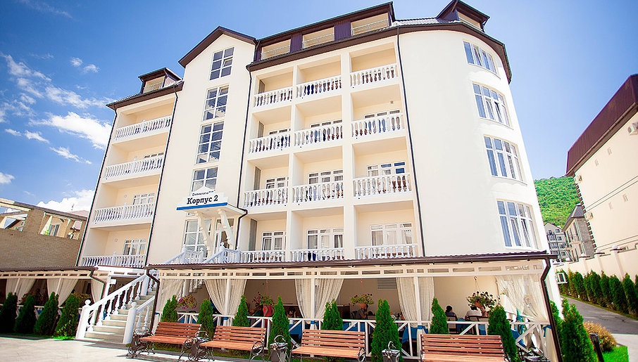 Отель представлен одиннадцатью корпусами разной этажности (до 6 этажей), не оборудованных лифтами. Идеальное место для семейного отдыха.
