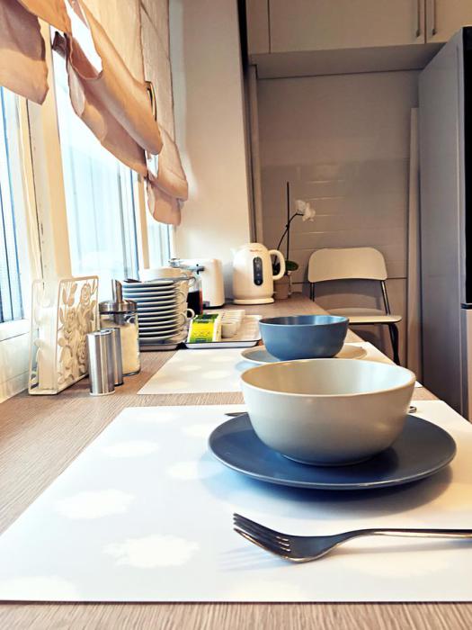 - наличие просторной оборудованной кухни: холодильник, варочная поверхность, микроволновая печь, чайник, тостер, стиральная машина, чай, кофе, макароны, крупы и специи, соусы и приправы, т.е.у нас есть всё для любителей домашней кухни.
