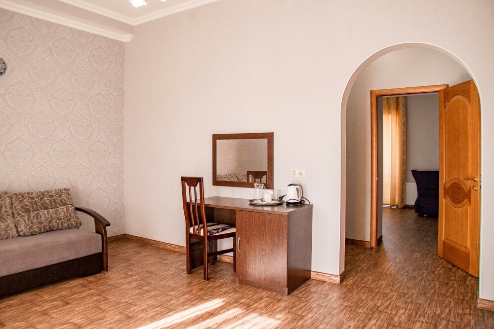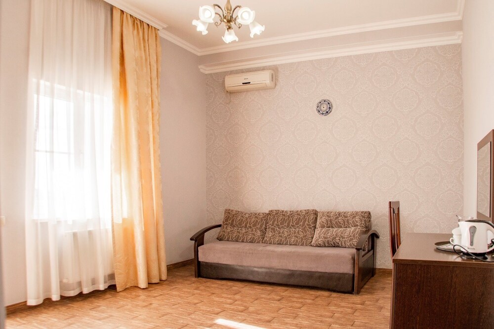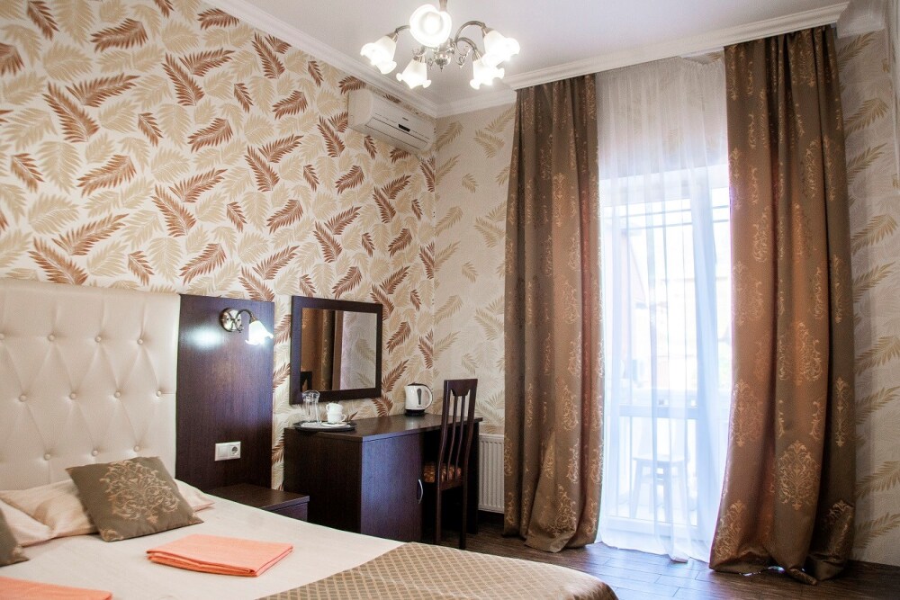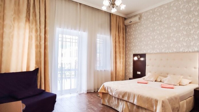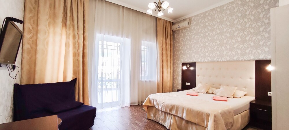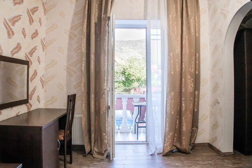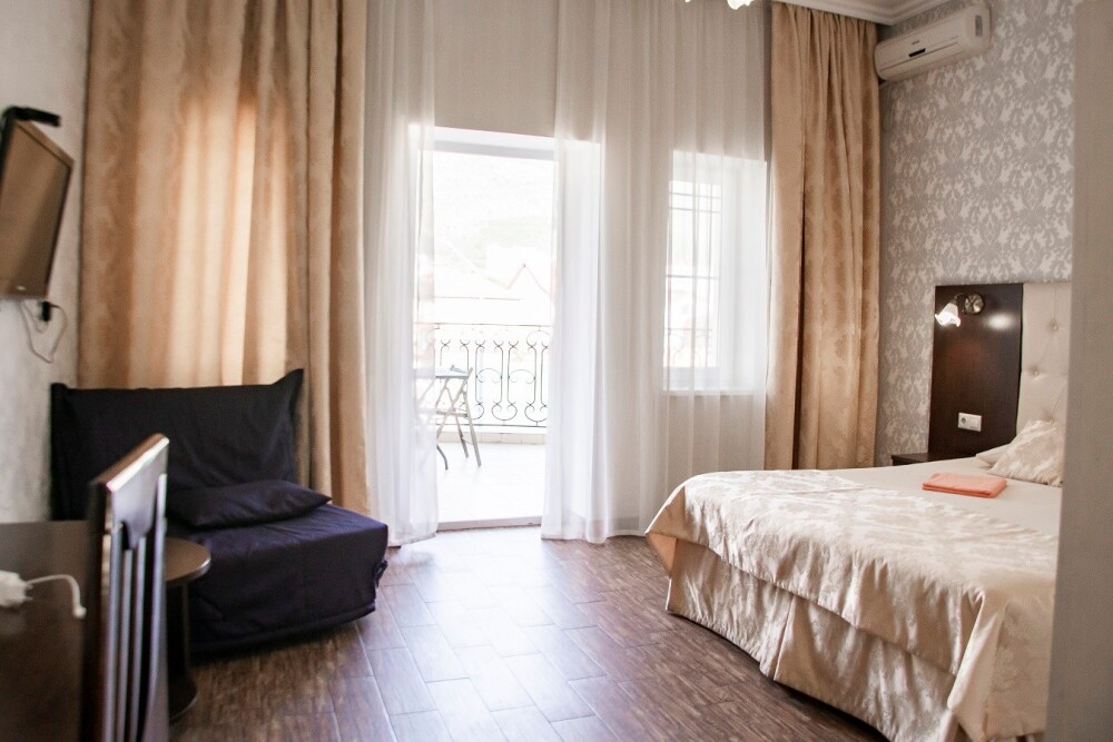 К услугам гостей 13 номеров категории «комфорт«с видом на горы или панорамным видом на Геленджикскую бухту. Во всех номерах есть холодильник, телевизор, чайник, письменный стол, собственная ванная комната. В некоторых номерах есть балкон.