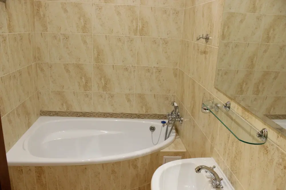 Оснащение: кровать евростандарта или 2 односпальные кровати (постельное бельё изготовлено из антиаллергических материалов); корпусная и мягкая мебель из экологически чистых материалов; кондиционер и отопление; плазменный телевизор и спутниковое ТВ; микроволновая печь, электрический чайник, холодильник; посуда; электронный сейф; фен; шкаф. Ванная комната (душевая кабинка, унитаз, умывальник с зеркалом, полотенцесушитель, все санузлы укомплектованы на проживание 3 человек банными полотенцами, тапочками, принадлежностями для душа).