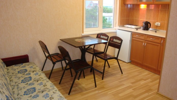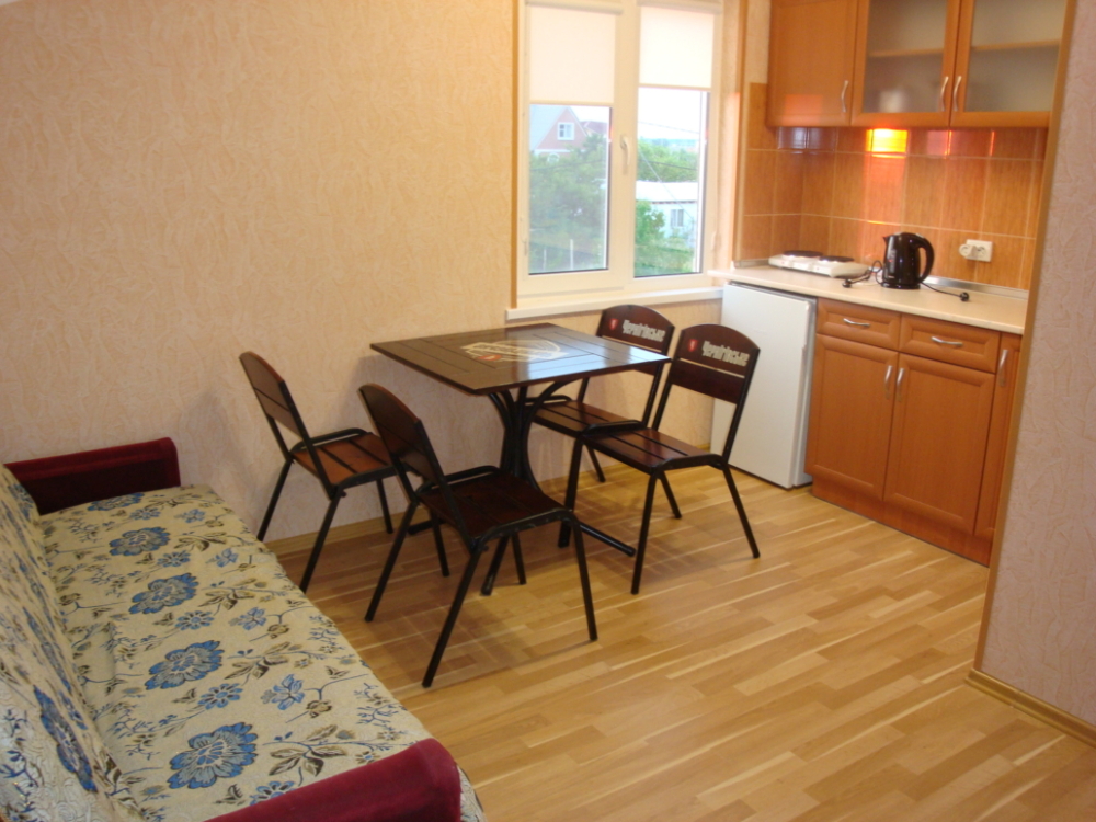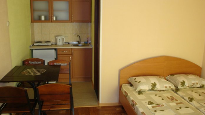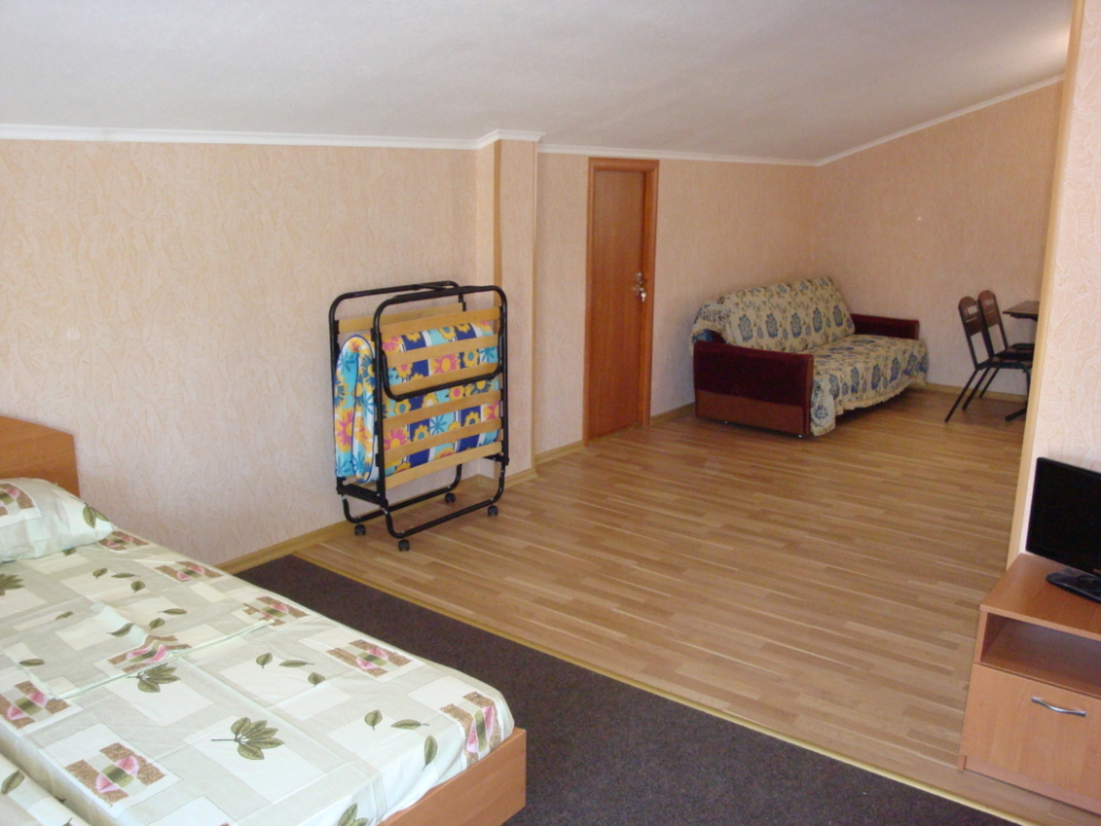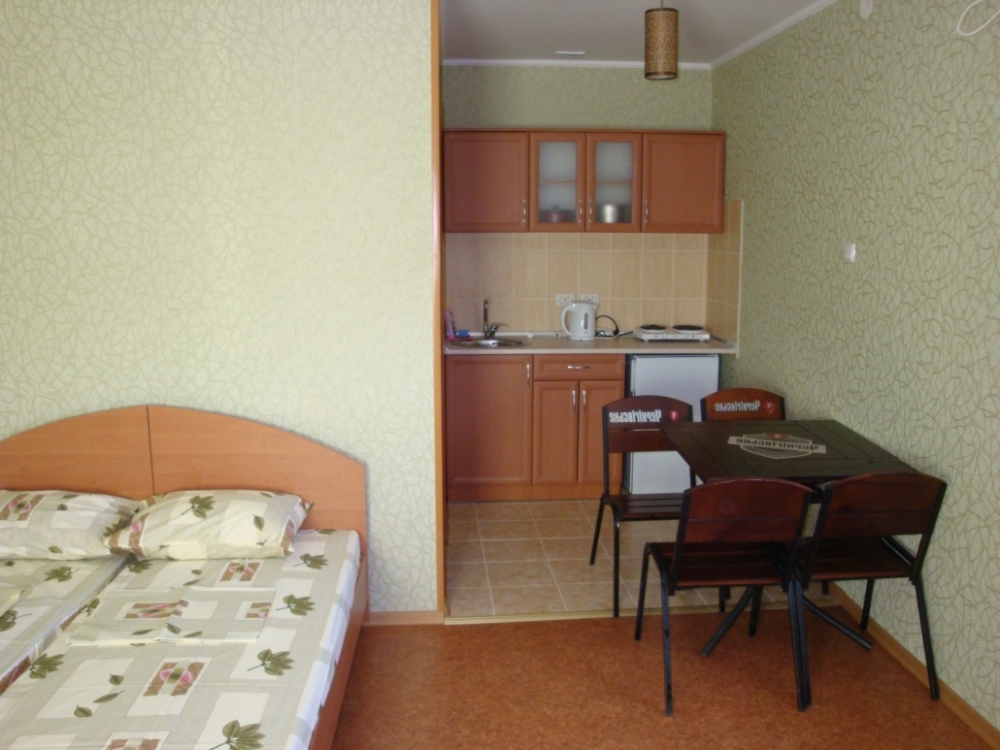 Вас ждут четыре 3-местных и один 4-местный номера. Все номера гостевого дома «Pirat» имеют всё необходимое для комфортного проживания: новая мебель, кондиционер, плоский телевизор. Номера оборудованы отдельным санузлом и собственной кухней (обеденный стол, холодильник, посуда, плита, чайник). Горячая и холодная вода подается круглосуточно.