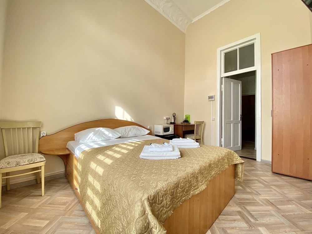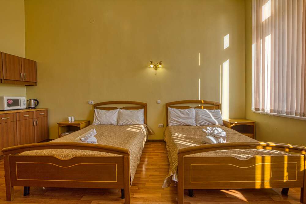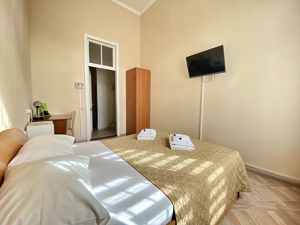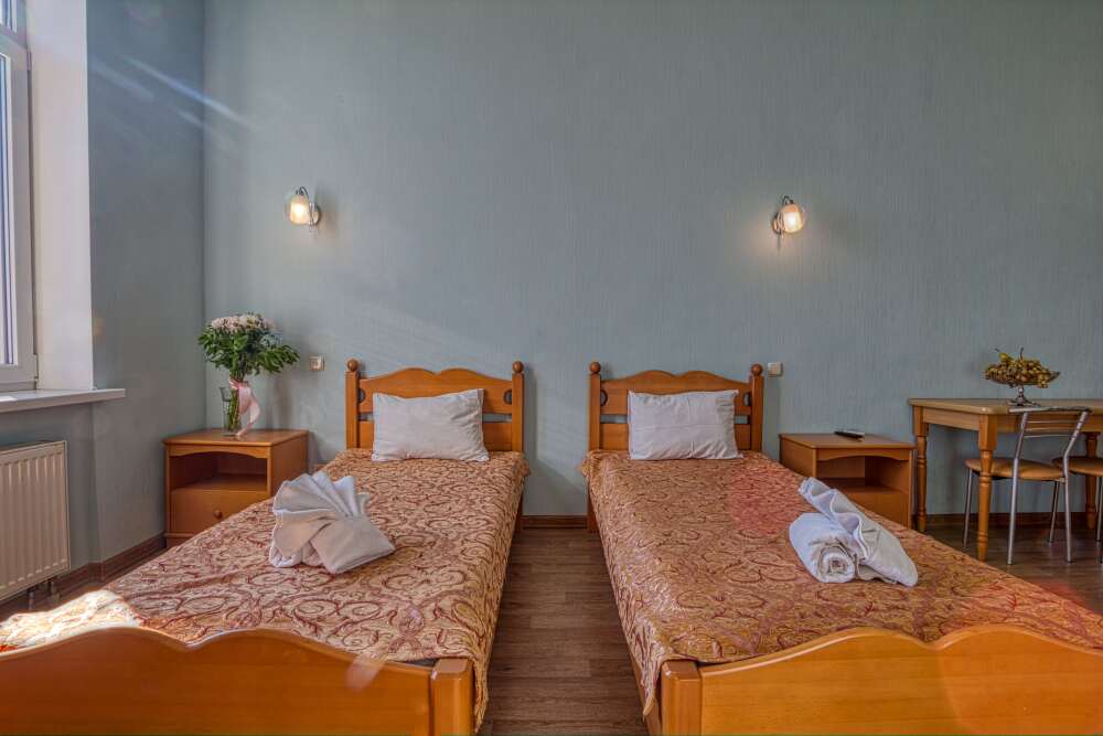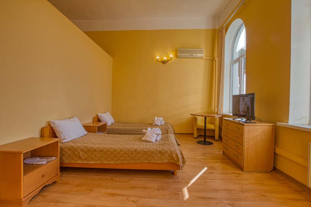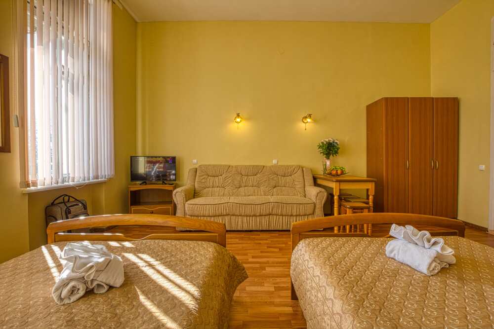 Уютный двухместный номер с одной семейной кроватью или двумя односпальными кроватями, с дополнительным местом в виде раскладного дивана или кресла, позволяющая комфортно разместиться от двух до трех человек.