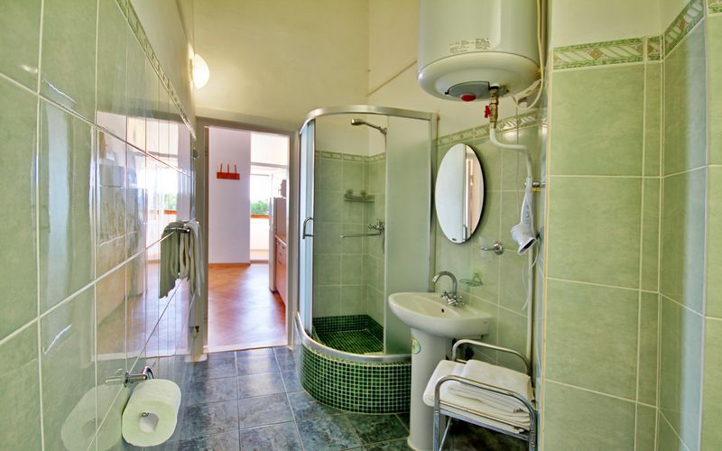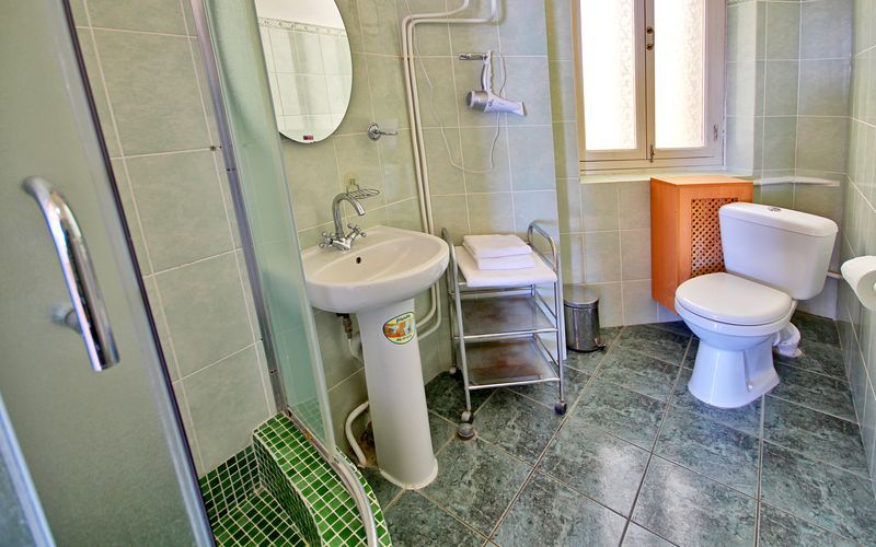 В номере расположен полноценный санузел с душевой кабиной.