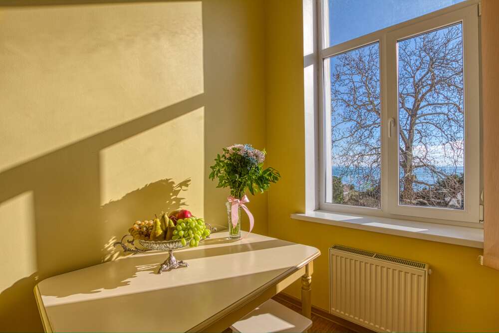 Из окон открывается живописный вид на море и Ялтинскую набережную.