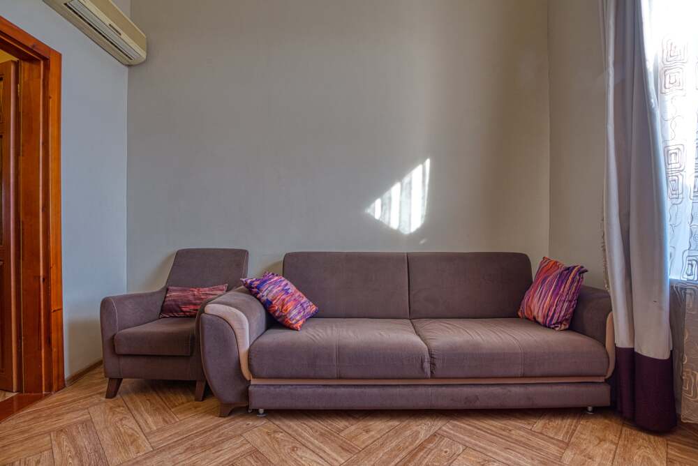 Просторный двухкомнатный номер общей площадью 45 кв.м., который подойдет для семейного размещения и позволит добавить дополнительные места.
