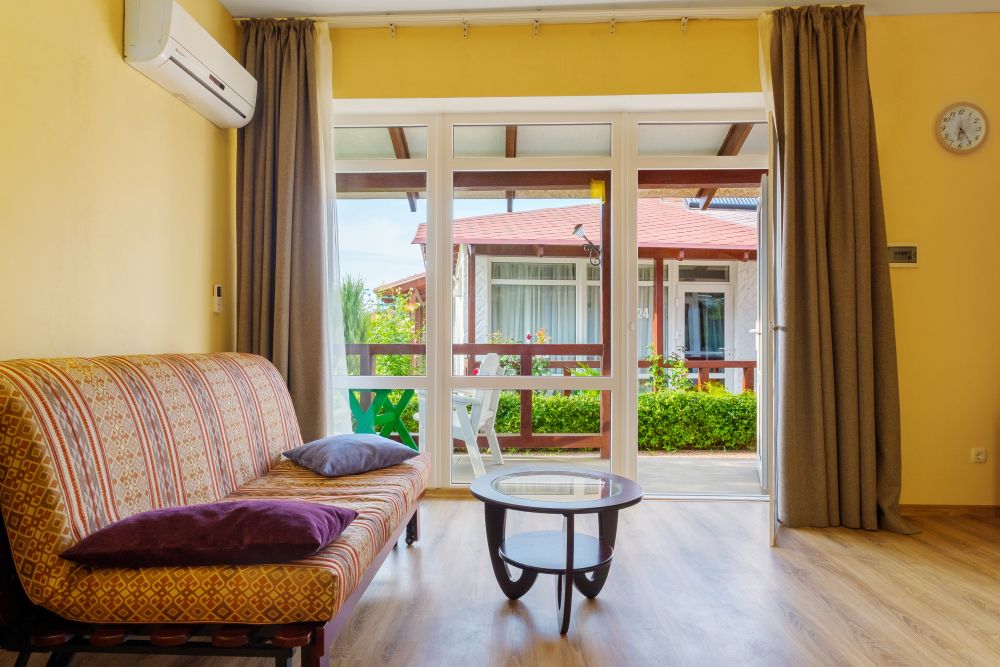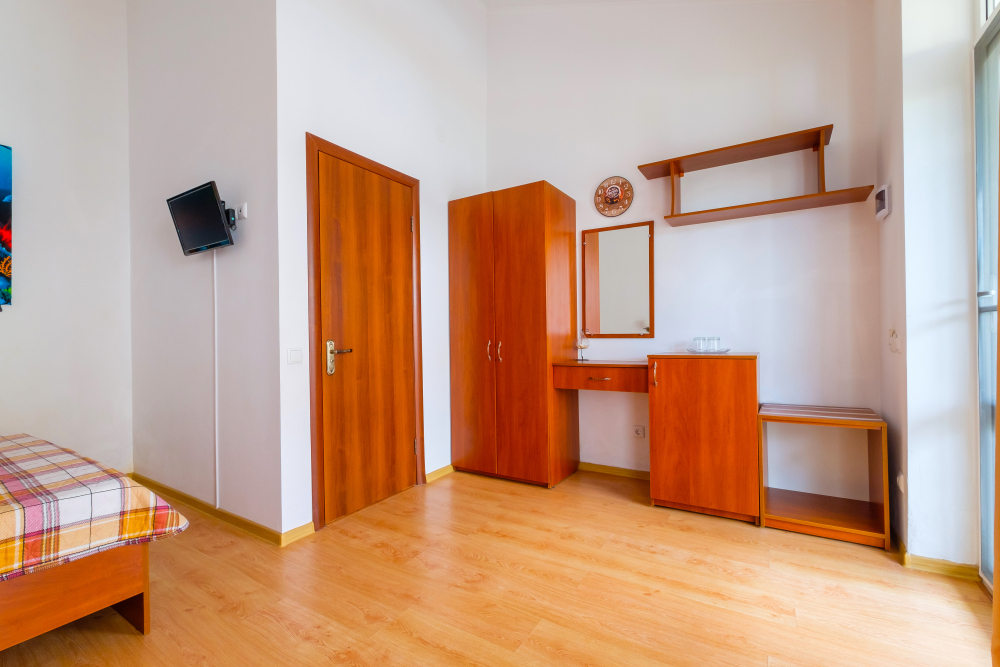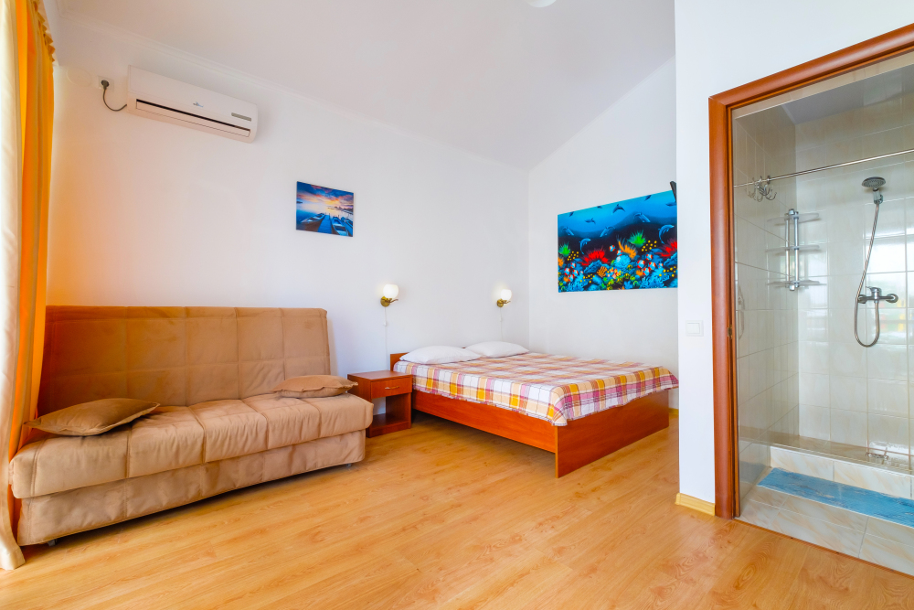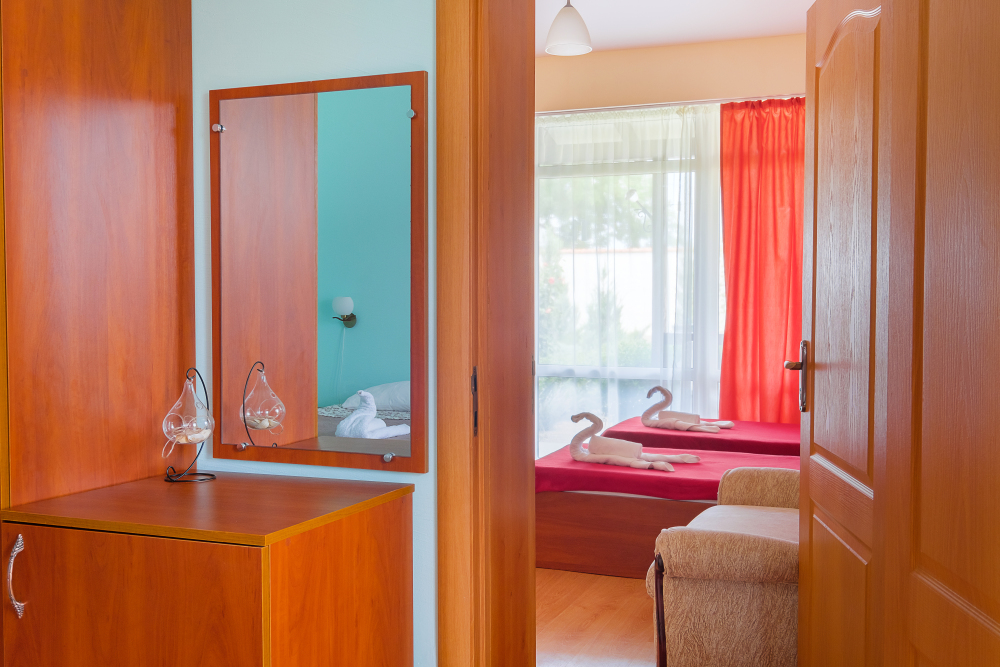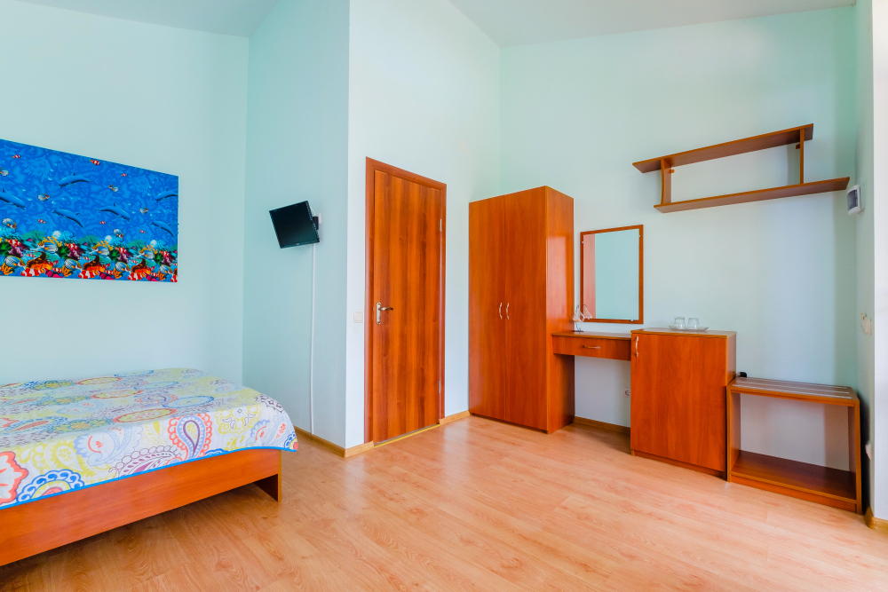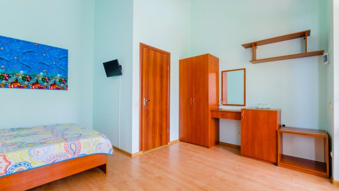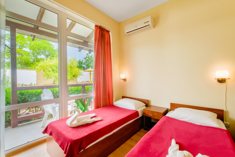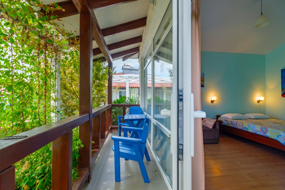 Уютный двухместный номер, в котором есть двуспальная или 2 полуторных кровати, кондиционер, телевизор со спутниковым ТВ, стол, сейф, посуда и холодильник, удобства. Номера с террасой или балконом. Есть доступ к Интернету (Wi-FI).