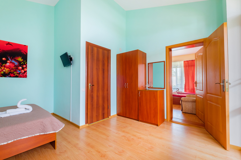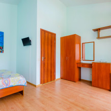 Двухкомнатный комфортабельный номер, рассчитанный на семью из 5 человек. В номере ТВ, холодильник, сейф, кондиционирование, сан. узел, душ, горячая и холодная вода круглосуточно.