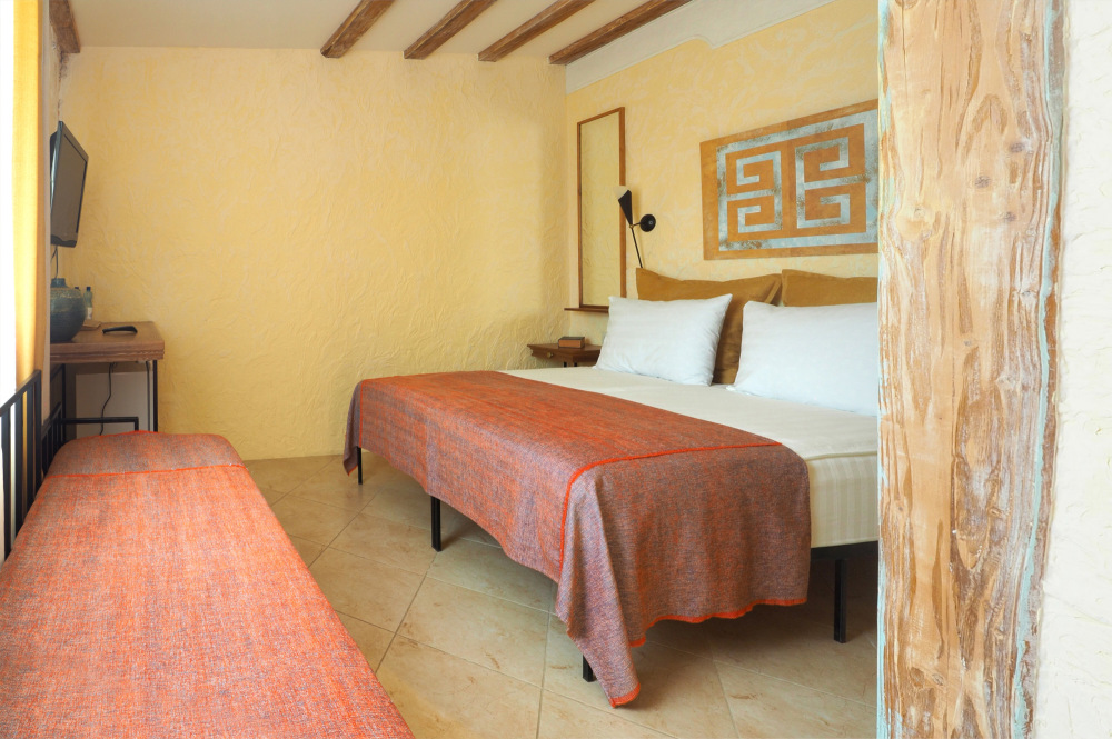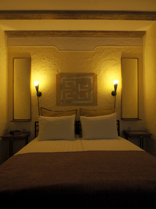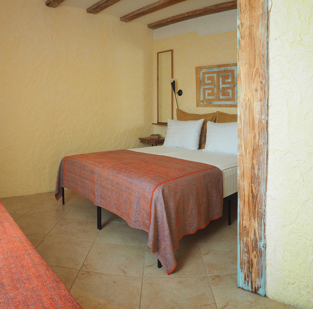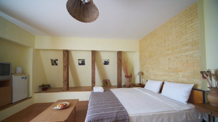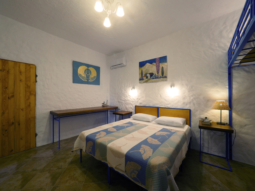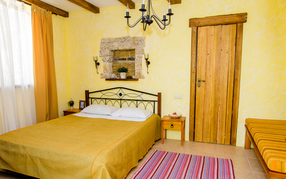 Двухкомнатный номер категории Делюкс № 9 (площадь 44 м², с раздельными комнатами, в средиземноморском стиле с собственной ванной комнатой, на втором этаже, с лоджией, видом на улицу и соседский дворик), четырёхместное размещение, на выбор две двухспальных кровати или одна двухспальная кровать и две раздельные кровати с ортопедическими матрасами и подушками.