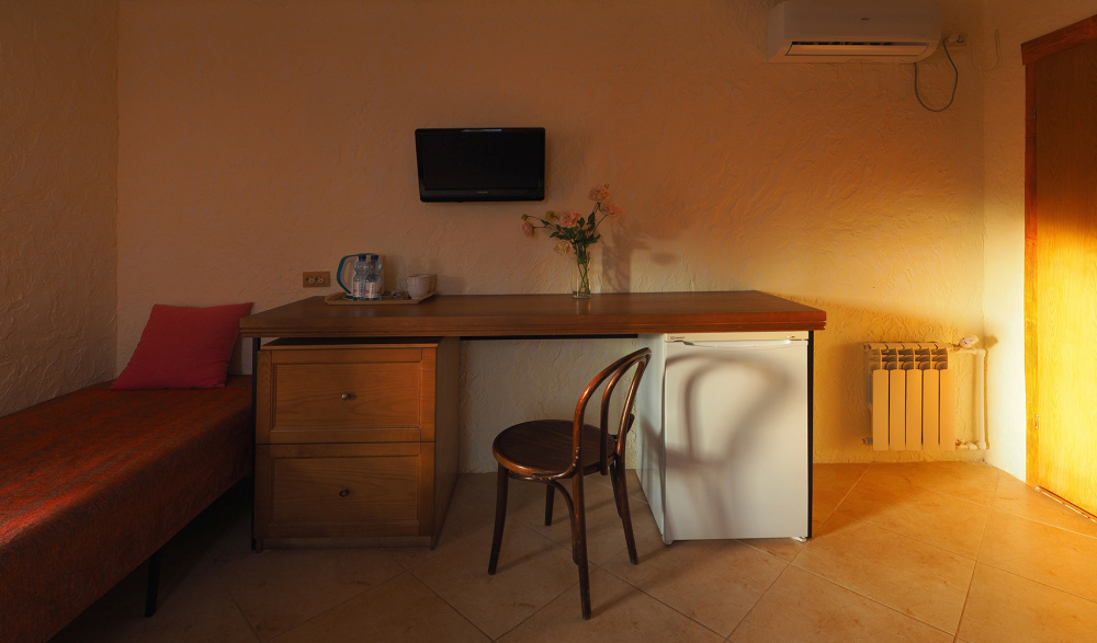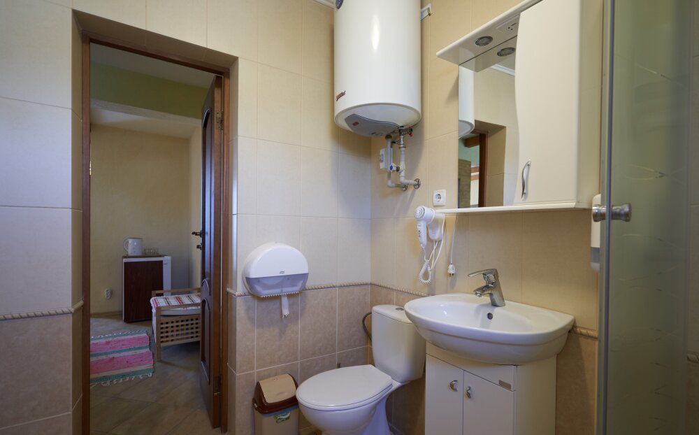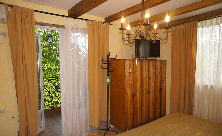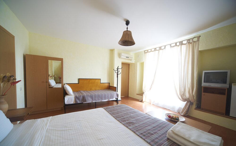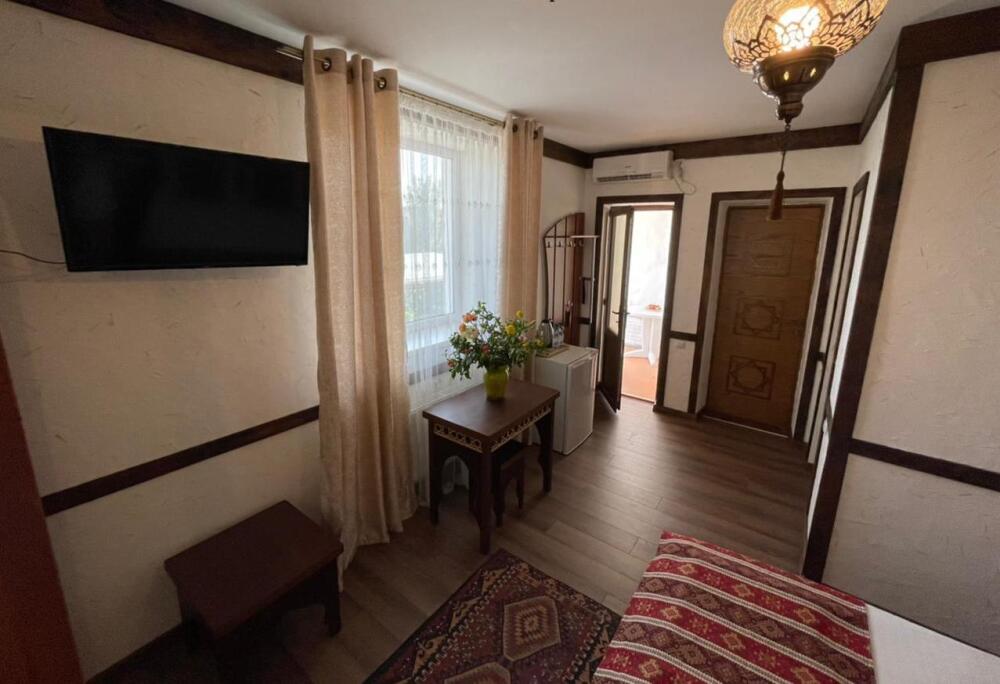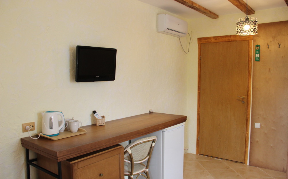 Скрасить ожидание завтрака поможет наш фирменный крымский травяной чай или ароматный кофе по-восточному. В собственной ванной комнате предоставляются бесплатные туалетно-косметические принадлежности и фен. В числе прочих удобств телевизор с плоским экраном.