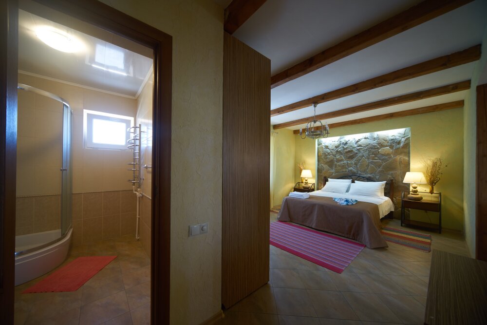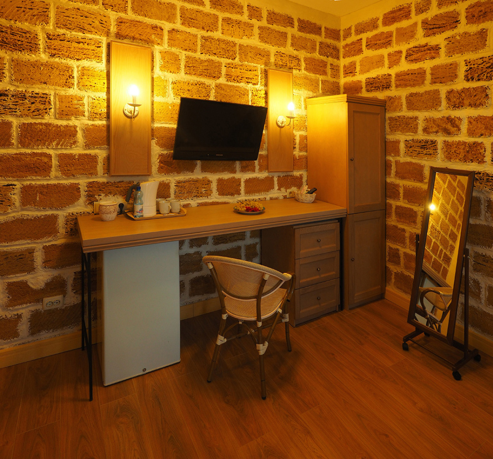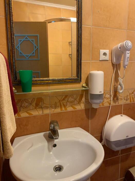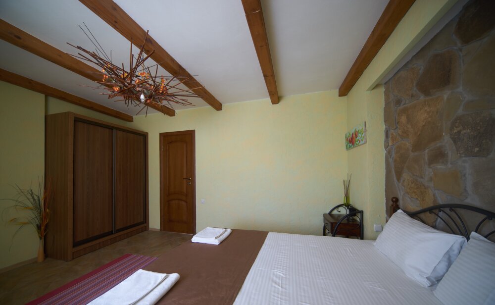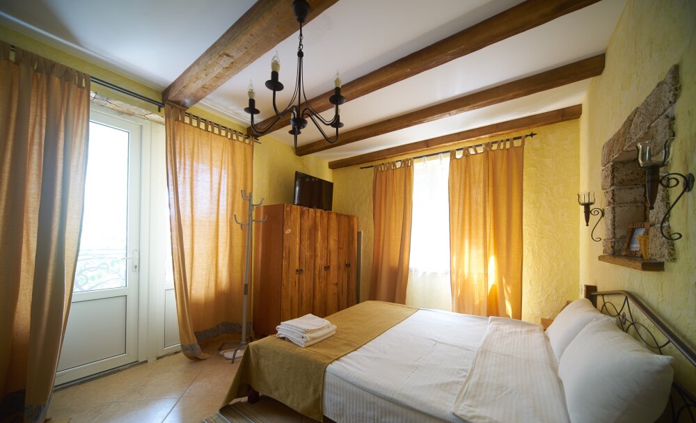 Скрасить ожидание завтрака поможет наш фирменный крымский травяной чай или ароматный кофе по-восточному. В собственной ванной комнате предоставляются бесплатные туалетно-косметические принадлежности и фен. В числе прочих удобств телевизор с плоским экраном.