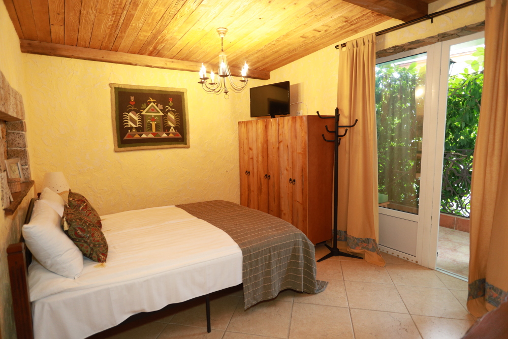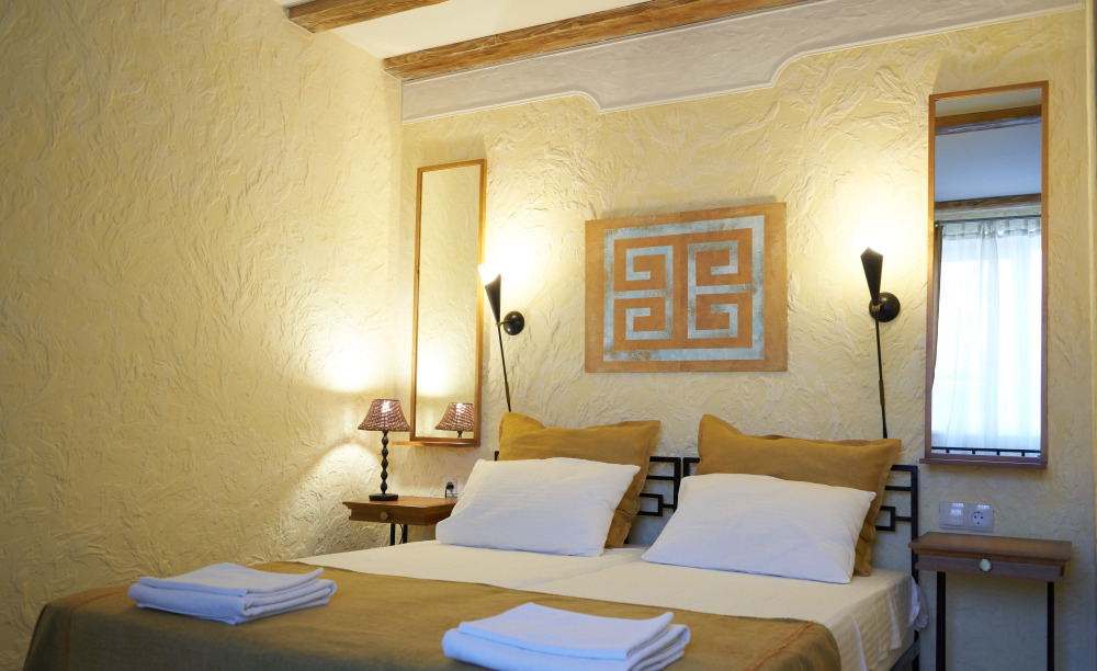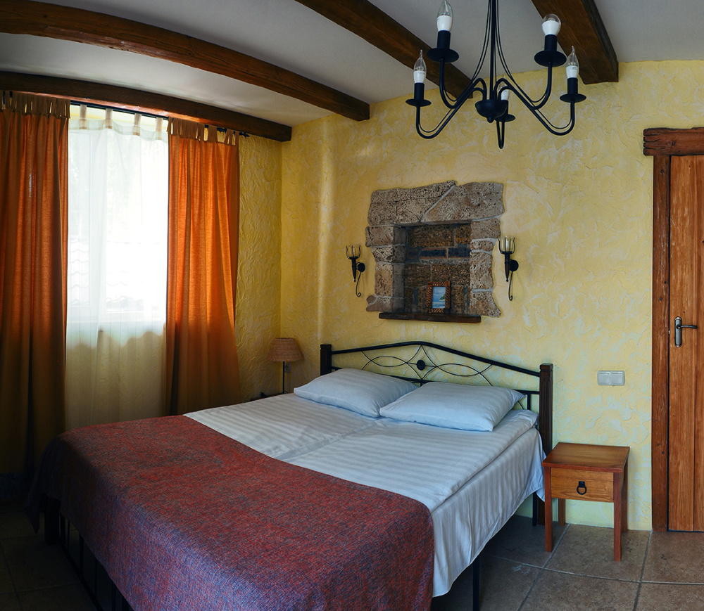 Однокомнатный двухместный номер категории Стандарт № 3 (площадь 18 м², в средиземноморском стиле с собственной ванной комнатой, на втором этаже, с лоджией, видом на внутренний дворик, двухместное размещение, одна двухспальная кровать с ортопедическим матрасом и подушками).