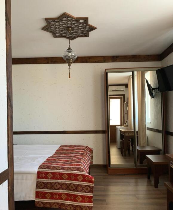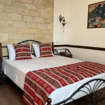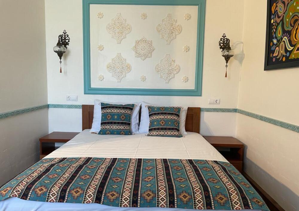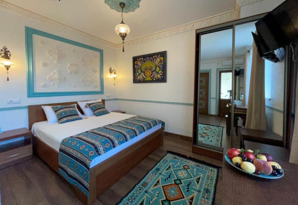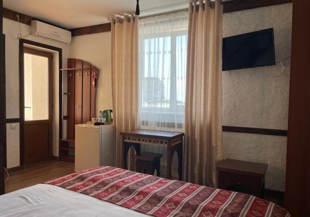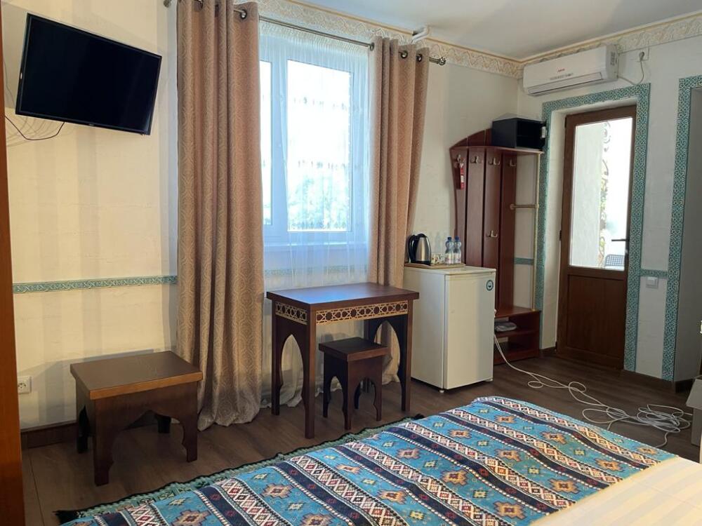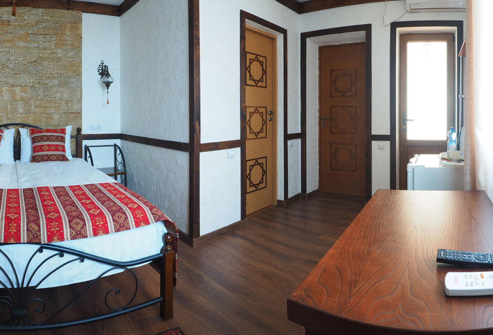 Однокомнатный двухместный номер категории Стандарт № 13 (площадь 18 м², в арабском стиле с собственной ванной комнатой, на втором этаже, с лоджией, видом на внутренний дворик, двухместное размещение, одна двухспальная кровать с ортопедическим матрасом и подушками).