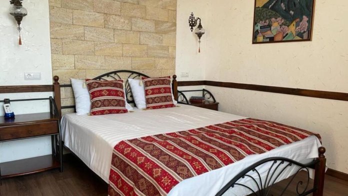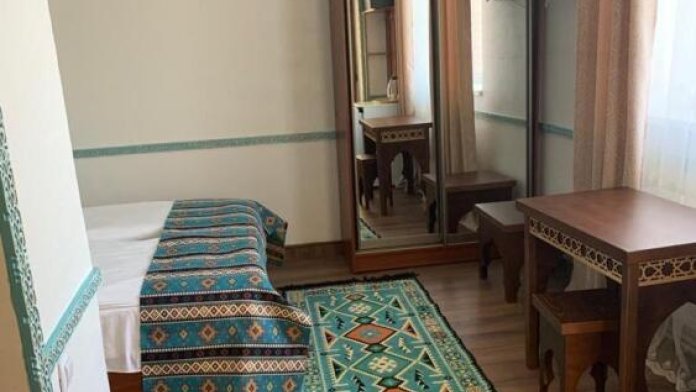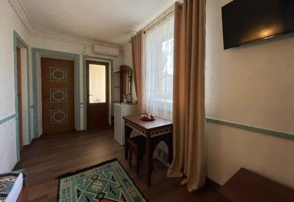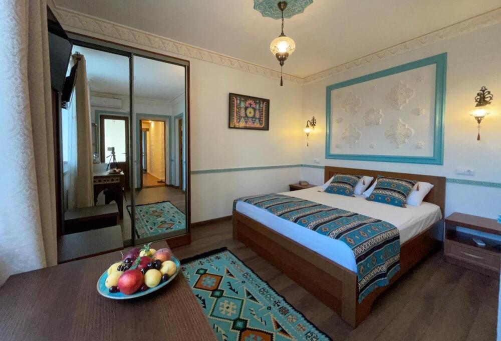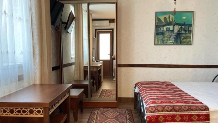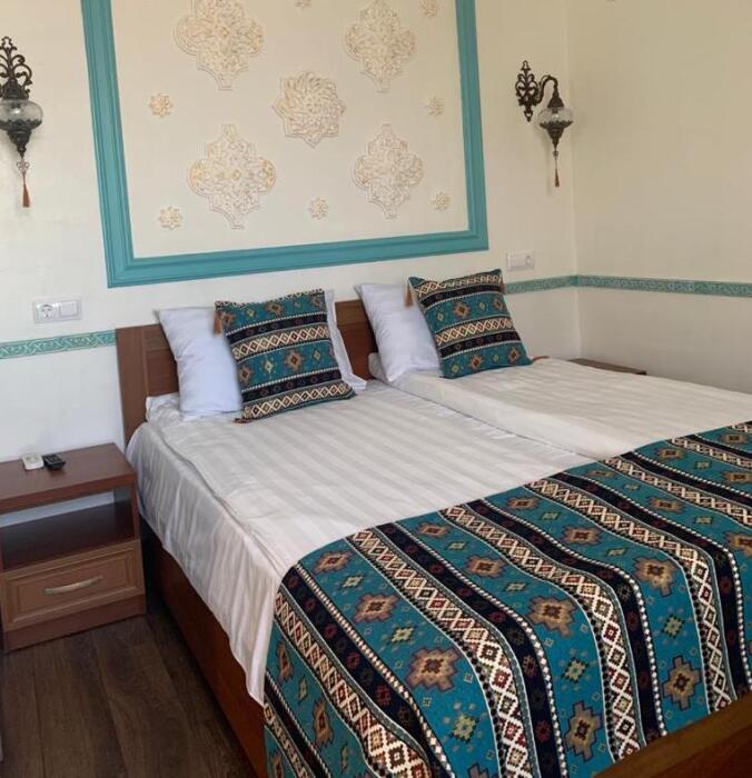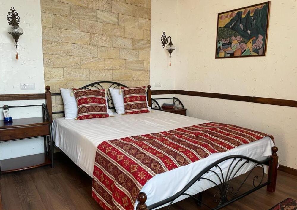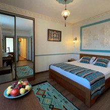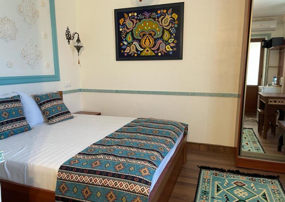 Однокомнатный двухместный номер категории Стандарт № 13 (площадь 18 м², в арабском стиле с собственной ванной комнатой, на втором этаже, с лоджией, видом на внутренний дворик, двухместное размещение, одна двухспальная кровать с ортопедическим матрасом и подушками).