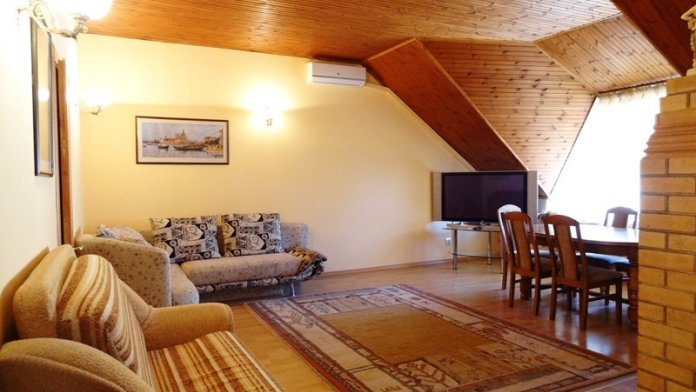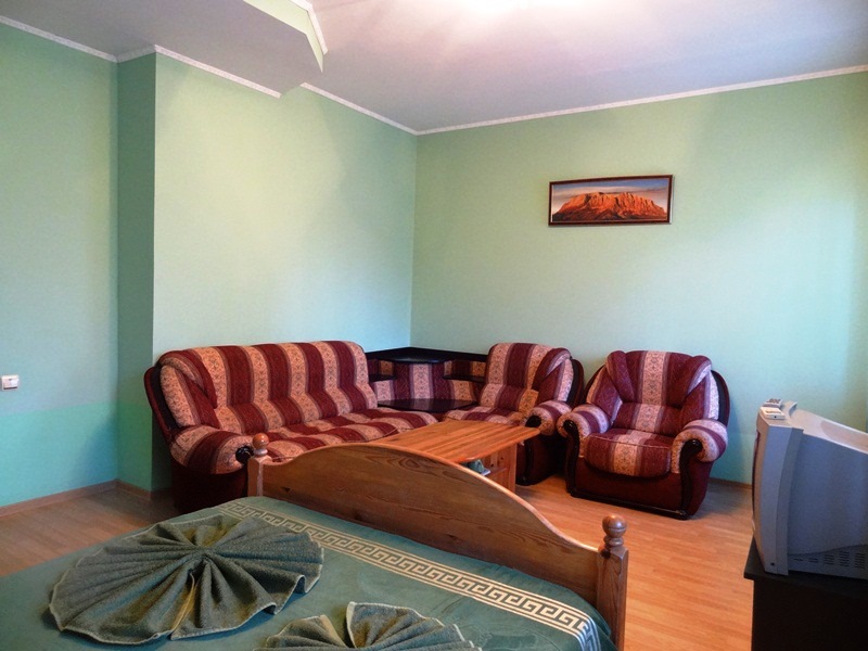 Гостевой дом предлагает разместиться в номерах типа Стандарт и Апартаменты. Все номера оборудованы отдельным санузлом, холодильником, телевизором и кондиционером, некоторые номера с балконами. Номер апартаменты с ванной комнатой , оборудованной джакузи и с кухней оснащенной всем необходимым (стиральная машина, посуда, плита).