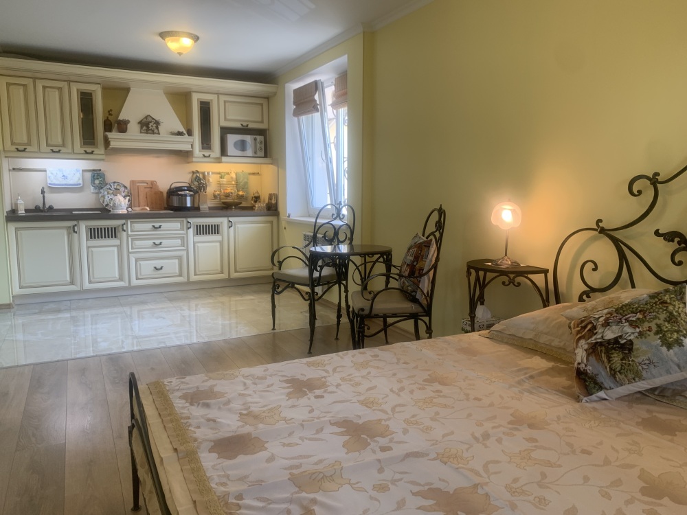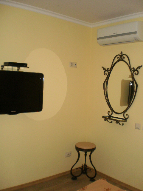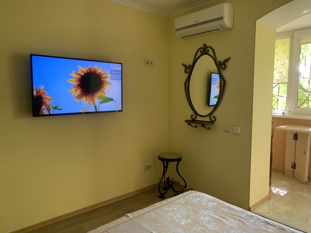 В комнате кондиционер,беспроводной WI-FI интернет,плазменный телевизор с USB разъёмом,двуспальная кровать,шкаф,индивидуальный сейф,прикроватные тумбочки,также в номере кухонная зона-холодильник,мультиварка с керамической чашей на 5 литров,электро чайник,микроволновка,необходимая кухонная и столовая посуда,мойка с подачей холодной и горячей водой. Раздельный санузел (находится рядом с комнатой, в общем холле.Удобства на две 2-х местные комнаты .