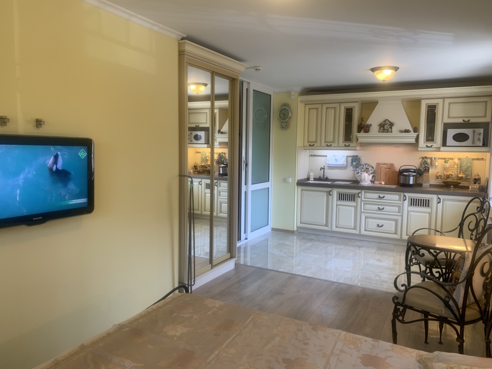 Оснащение комнаты:кондиционерами,спутниковым и кабельным ТВ,зоной WI-FI,кухонной зоной(холодильник,эл.чайник,мультиварка с керамической чашей на 5 литров,СВЧ,необходимая кухонная и столовая посуда).