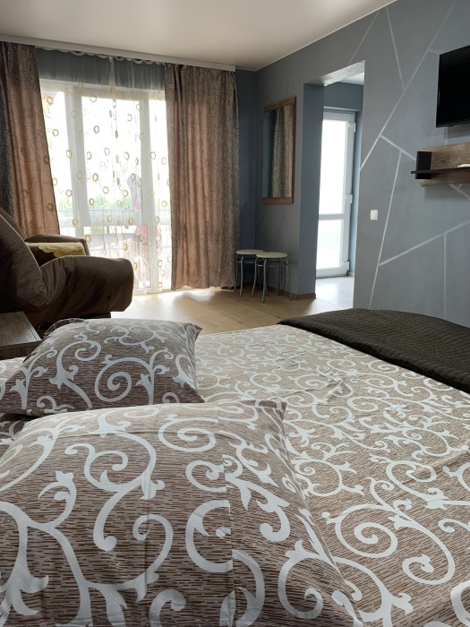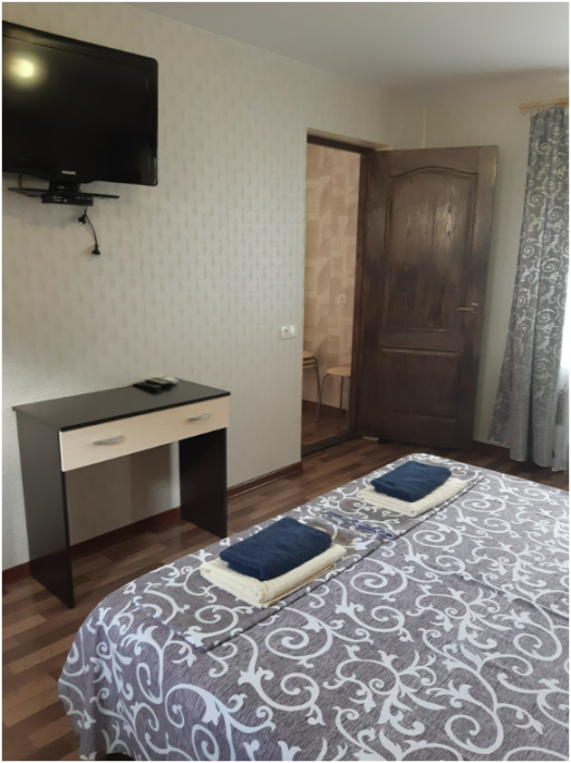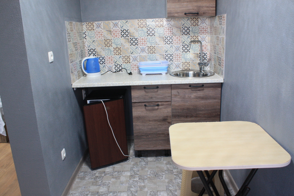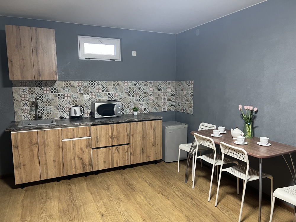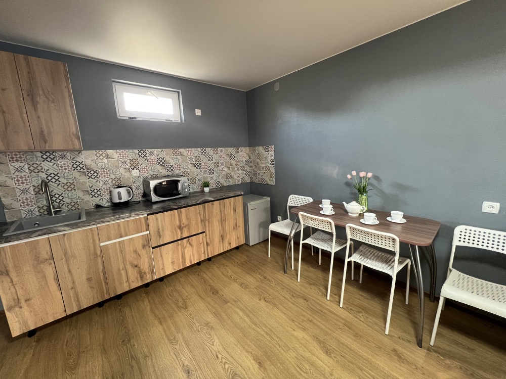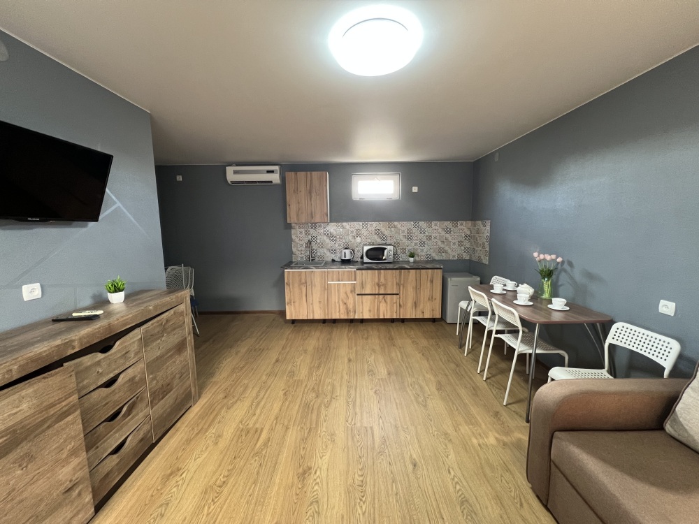Однокомнатный номер находится на первом этаже, кроме этого этот номер еще имеет кухню с необходимой посудой и принадлежностями. Номер рассчитан на 4 места.