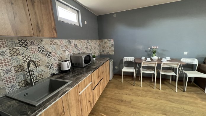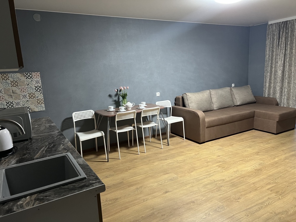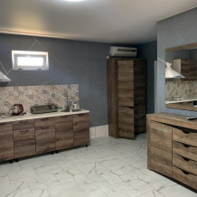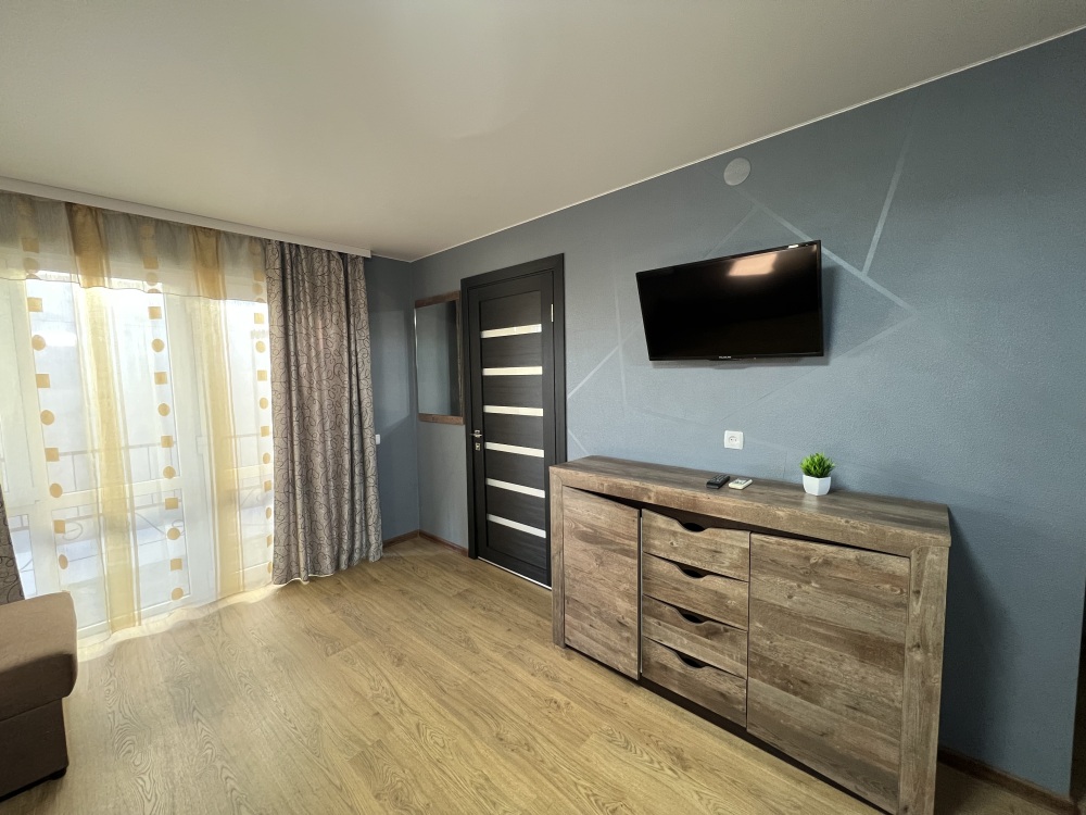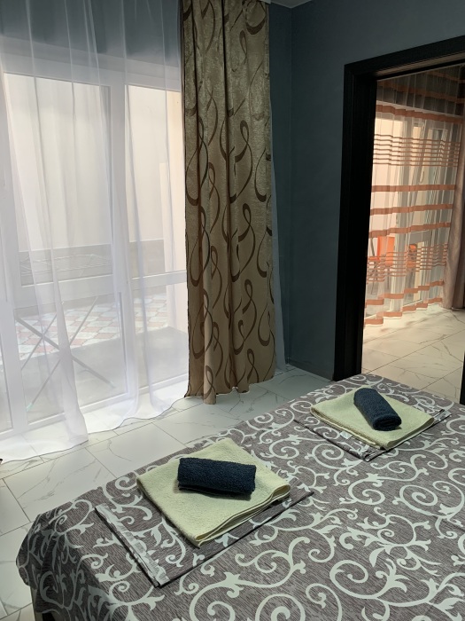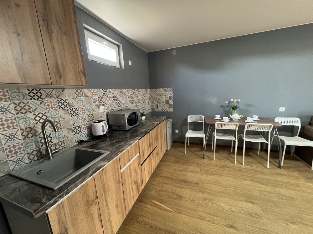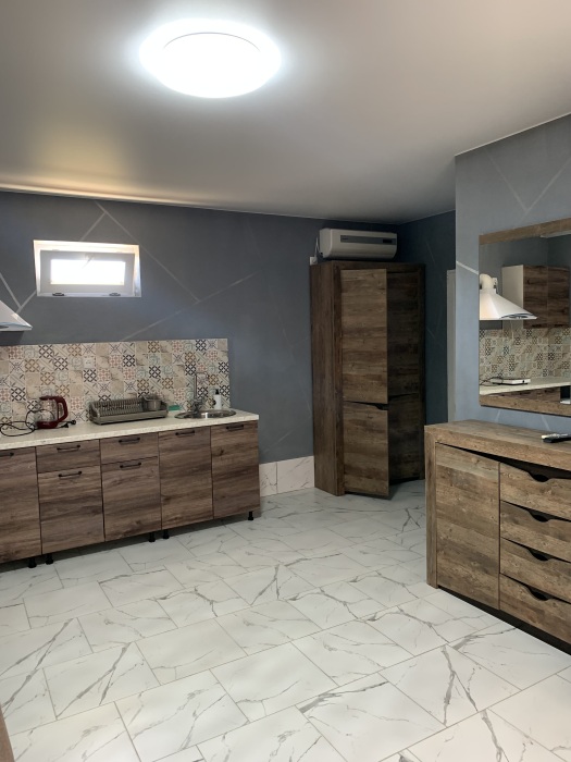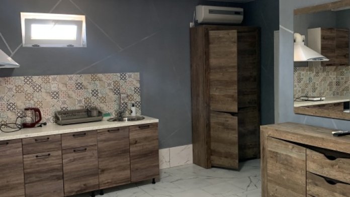 Однокомнатный номер находится на первом этаже, кроме этого этот номер еще имеет кухню с необходимой посудой и принадлежностями. Номер рассчитан на 4 места.