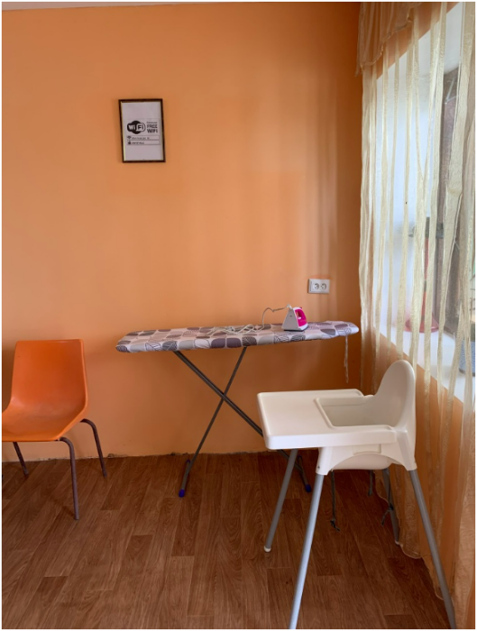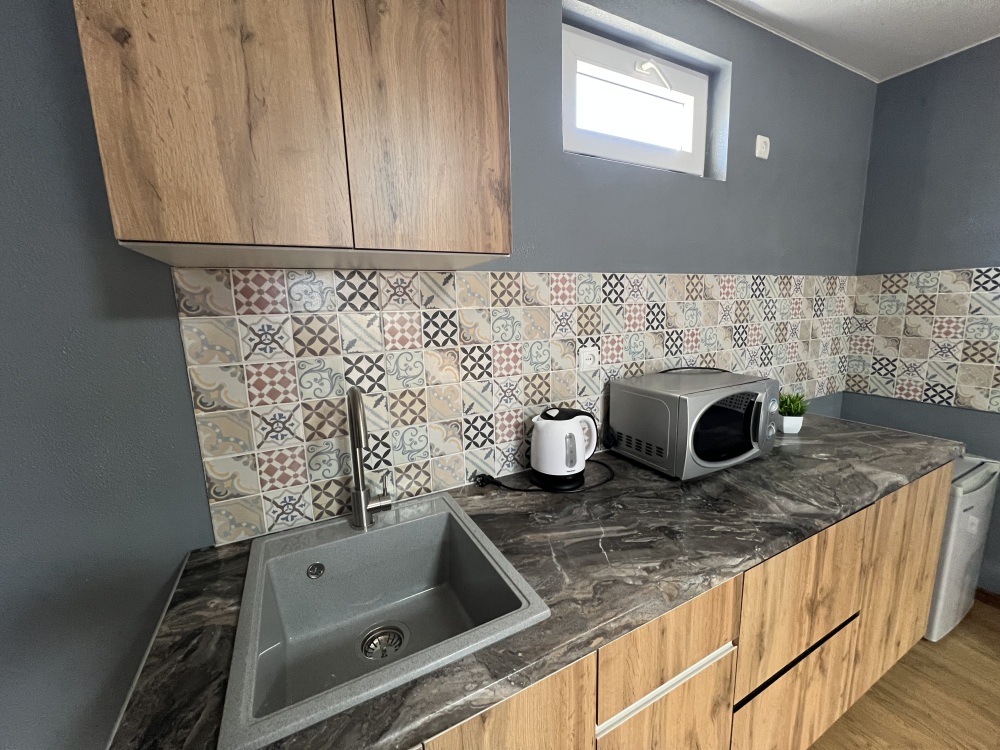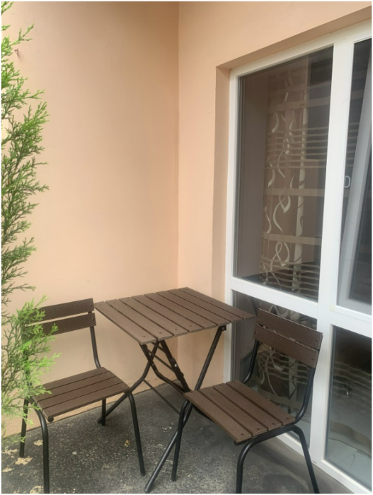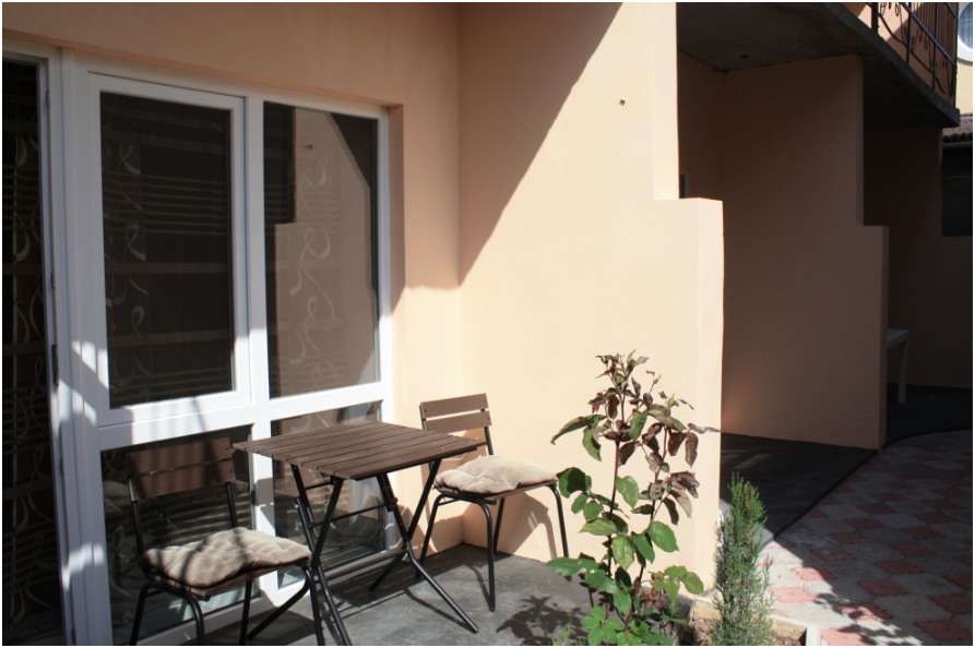 двухкомнатный номер расположен на первом этаже, со своей верандой и со столиком. В номере своя кухня с электроплитой.