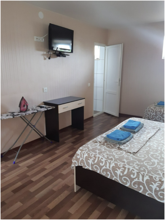 Все номера гостевого дома расположены на озелененной огороженной территории. Вниманию отдыхающих представлены стандартные двухместные и трехместные комнаты, а также комнаты с личной кухней, двухкомнатные номера с кухней и мини-кухней.
