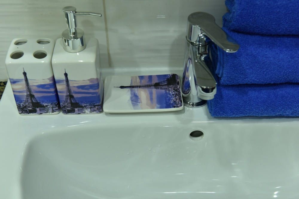 Забота о быте: Душевая комната укомплектована не только стандартным набором техники (фен, утюг), но и средствами гигиены, что избавляет вас от необходимости брать лишний багаж.
