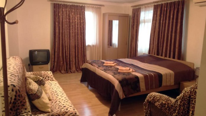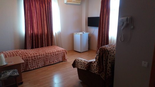 Отель располагает 14 уютными номерами, в каждом номере имеется вся необходимая мебель, чтобы вы провели отпуск беззаботно, не нуждаясь ни в чем. Работает кондиционер и кабельное ТВ. Отдельная ванная комната укомплектована необходимой косметикой. Установлен сейф. Все номера оформлены в индивидуальном дизайне. На первом этаже расположена кухня для самостоятельного приготовления пищи. Так же предоставляется мангал для приготовления так всеми любимого шашлыка.