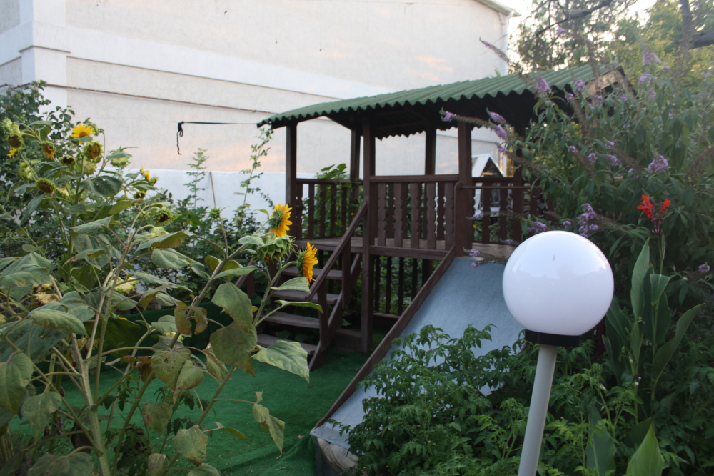 На территории зелёный дворик, три беседки для отдыха, отдельно стоящая кухня (посуда для приготовления и употребления пищи имеется), барбекю. Имеется детская площадка, качеля.