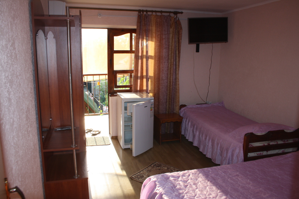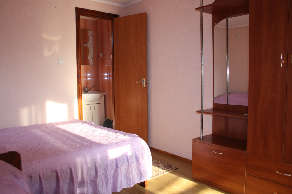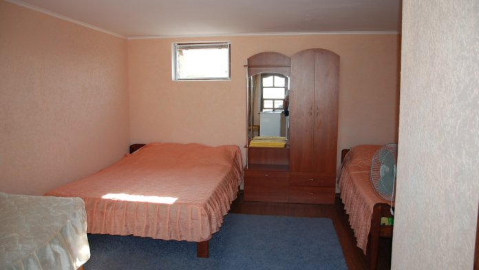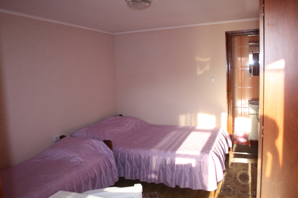 В гостевом доме Вас ждет тихий, семейный отдых на берегу Черного моря. В наличии комнаты - 2-3-4-х местные. В каждой комнате - деревянные кровати (одна 140х190 и 80х190), шкаф, телевизор, холодильник, тумбочка, постельной белье, полотенце, санузел с душем совмещены ( вода холодная и горячая постоянно, не зависим от центрального водоснабжения). Уборка комнат после выезда.