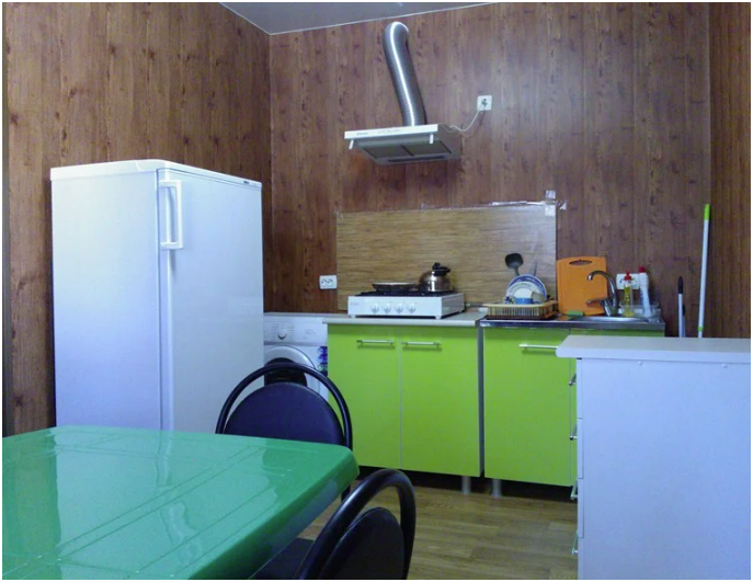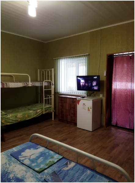 2. Есть 4 комнаты повышенной комфортности, где в каждой комнате душ, унитаз, умывальник, кондиционер, телевизор и общая кухня на 2 семьи со стиральной машиной автомат, газовой плитой, микроволновкой, всей посудой.