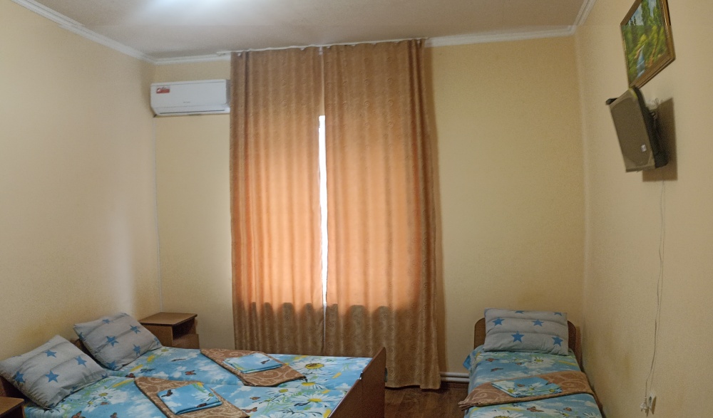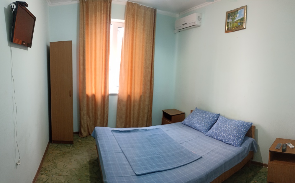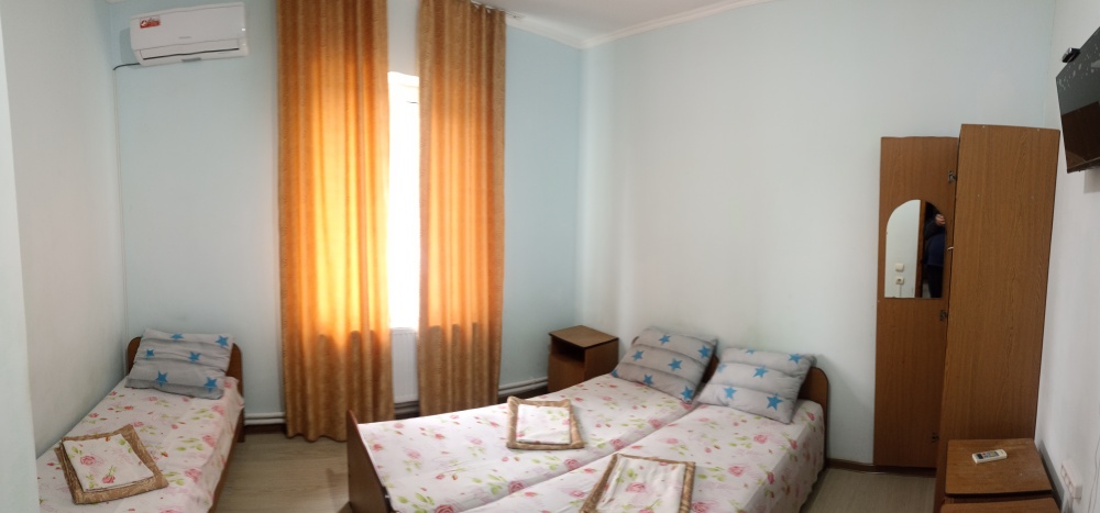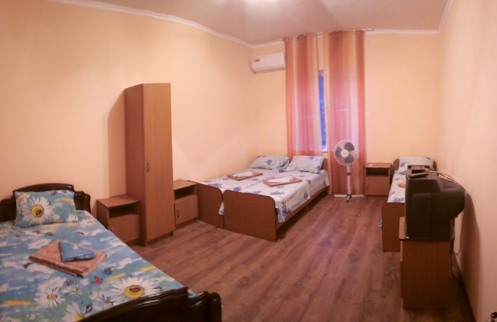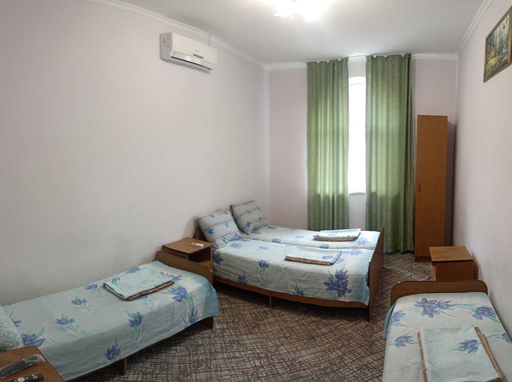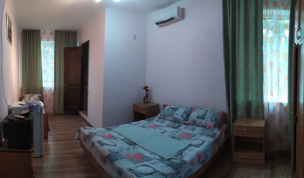 Двухэтажный гостевой дом представляет собой 12 комфортабельных номеров категорий «Эконом» и «Стандарт».Все номера с удобствами: удобная мебель, телевизор, кондиционер и санузел. В вашем распоряжении кухня-столовая со всем оборудованием и мангал для самостоятельного приготовления шашлыка. Во дворе имеются три беседки для отдыха на чистом воздухе, атмосфера тишины и спокойствия поможет вам расслабиться и отвлечься от повседневных забот.
