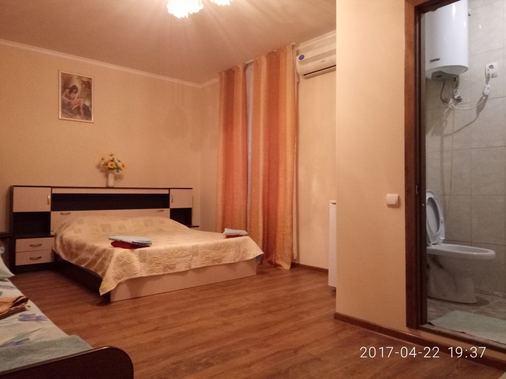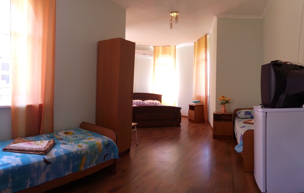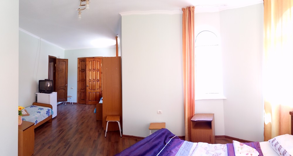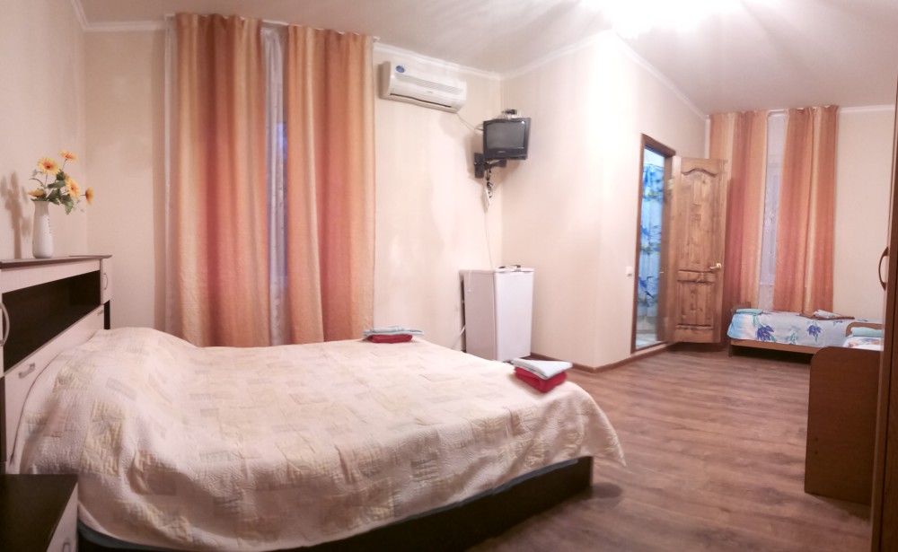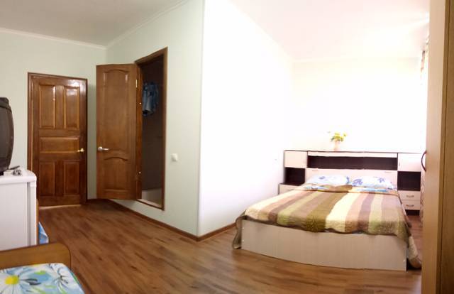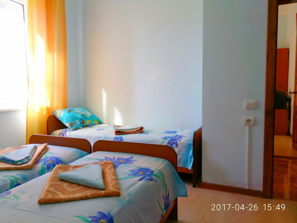 Двухэтажный гостевой дом представляет собой 12 комфортабельных номеров категорий «Эконом» и «Стандарт».Все номера с удобствами: удобная мебель, телевизор, кондиционер и санузел. В вашем распоряжении кухня-столовая со всем оборудованием и мангал для самостоятельного приготовления шашлыка. Во дворе имеются три беседки для отдыха на чистом воздухе, атмосфера тишины и спокойствия поможет вам расслабиться и отвлечься от повседневных забот.