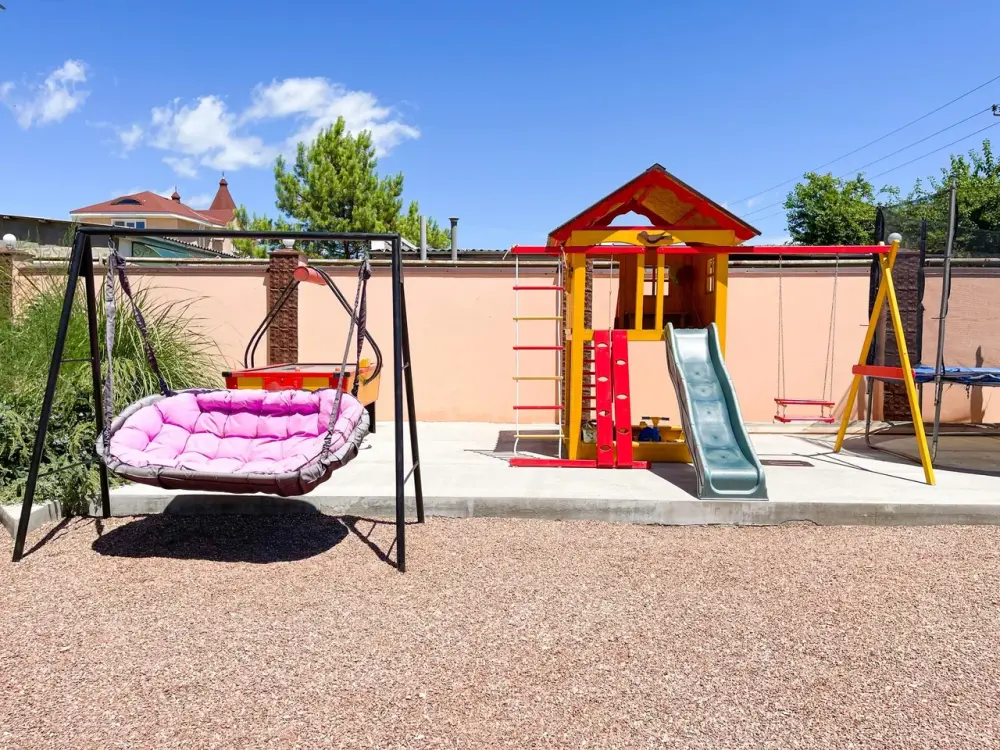 Для детей детская площадка, анимация один раз в неделю, детские кроватки.
