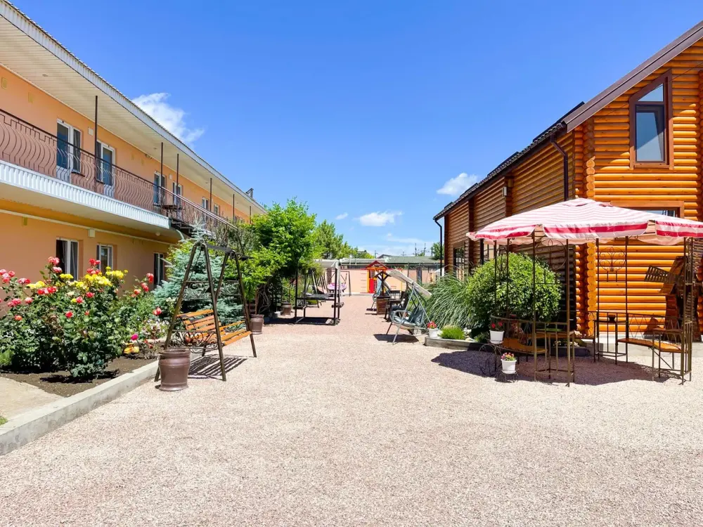 Гостевой дом расположен в селе Поповка Сакского района Крыма, в 600 м от чистого пляжа и Черного моря.