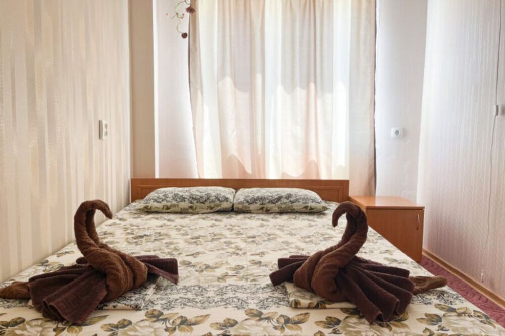 У нас песчаные пляжи и идеальный вход в море. При этом море совсем неглубокое - отлично подходит для отдыха с детьми. Пляж находится всего 600 метрах. На пляже есть бары и кафе, различные виды развлечений для детей и взрослых.
