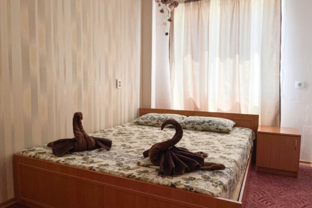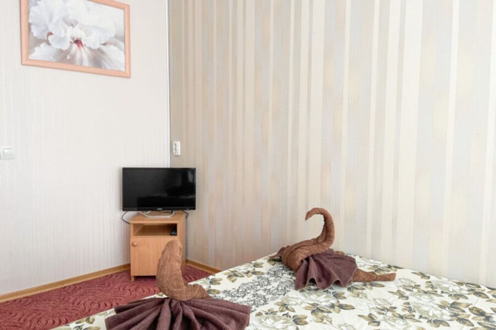 В номере одна двуспальная кровать или две односпальные кровати.