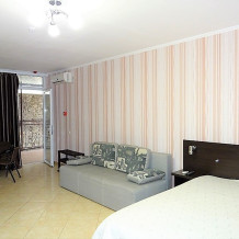 На территории базы 2 современных корпуса с номерами «Люкс» и «Полулюкс», а так же деревянные домики с номерами «Эконом» класса. В каждом номере есть все необходимое для комфортного отдыха.