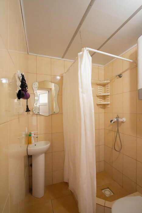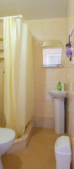 Уютный номер с четырьмя односпальными кроватями,холодильник,кондиционер,эл.чайник,комплекты полотенец,постельное белье,вода хол.гор.круглосуточно,своя терраса с обеденным столом.В номере бесплатный Wi-Fi