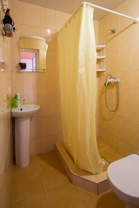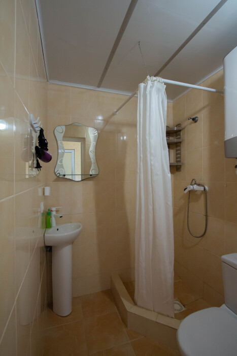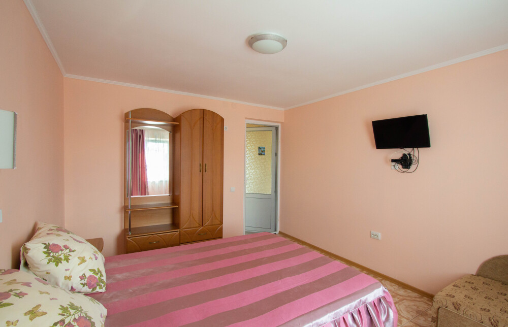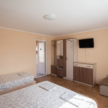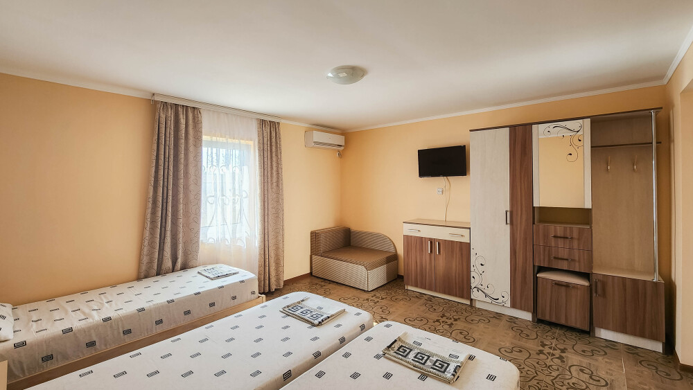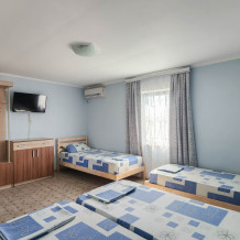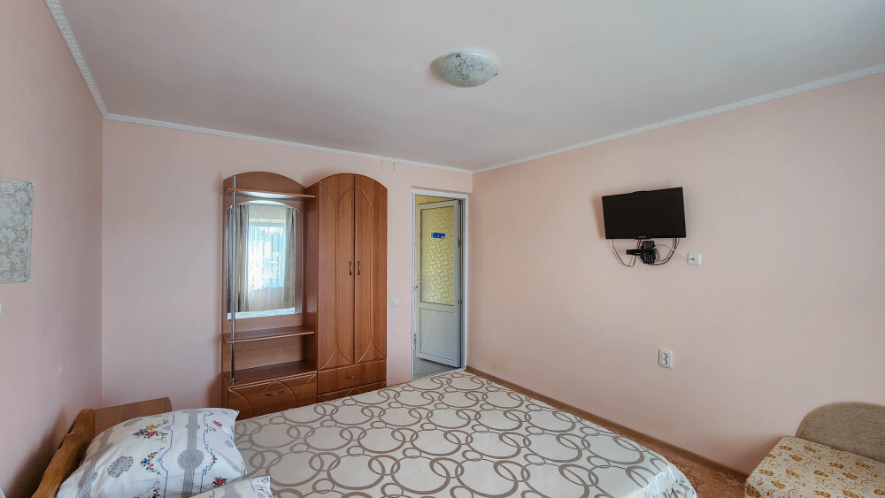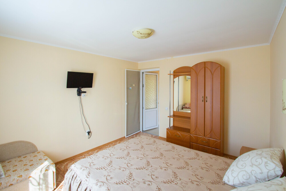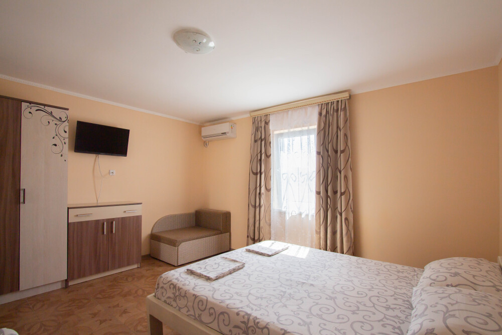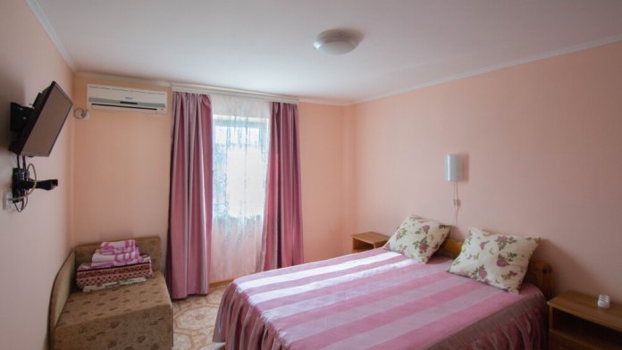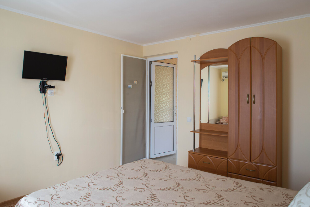 Гостевой дом располагает двумя уютными трехместными номерами с дополнительным местом -раскладной диванчик. В первом номере двухспальная кровать и одна односпальная кровать.Во втором номере три односпальные кровати. В обоих номерах имеется кондиционер.телевизор,шкаф с зеркалом.своя оборудованная терраса.Во всех номерах бесплатный Wi-Fi