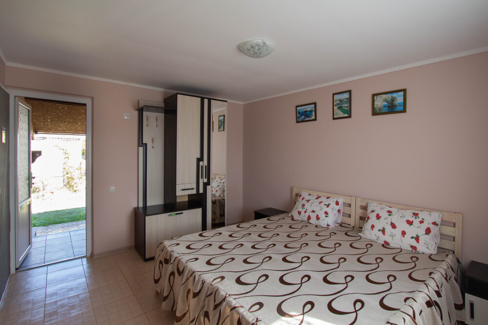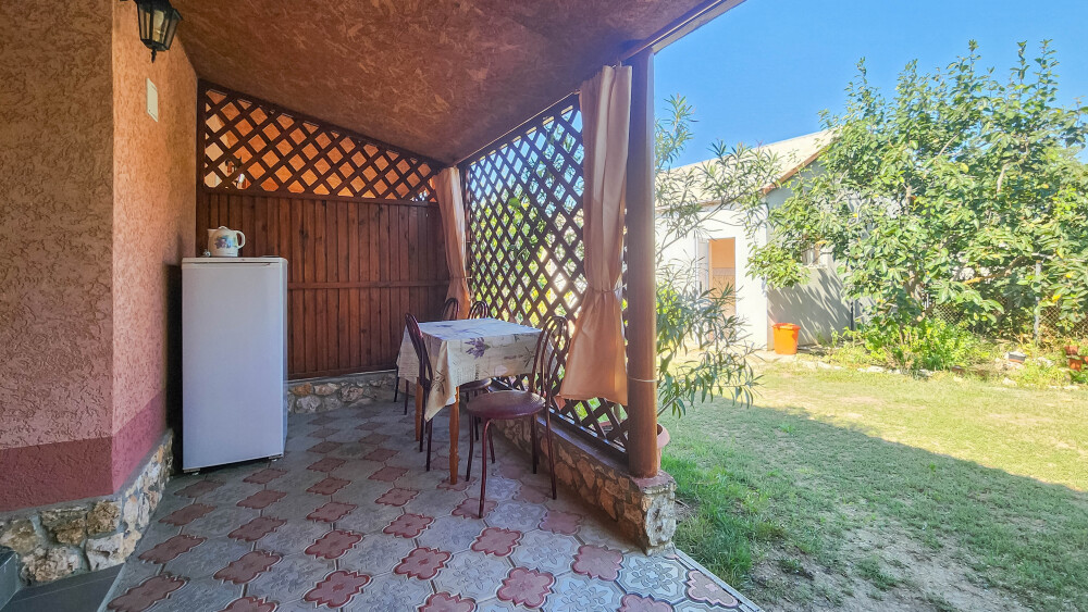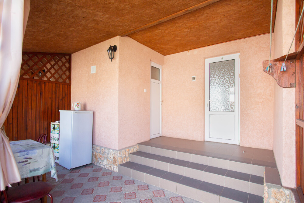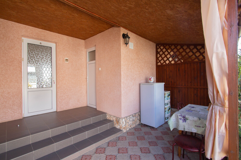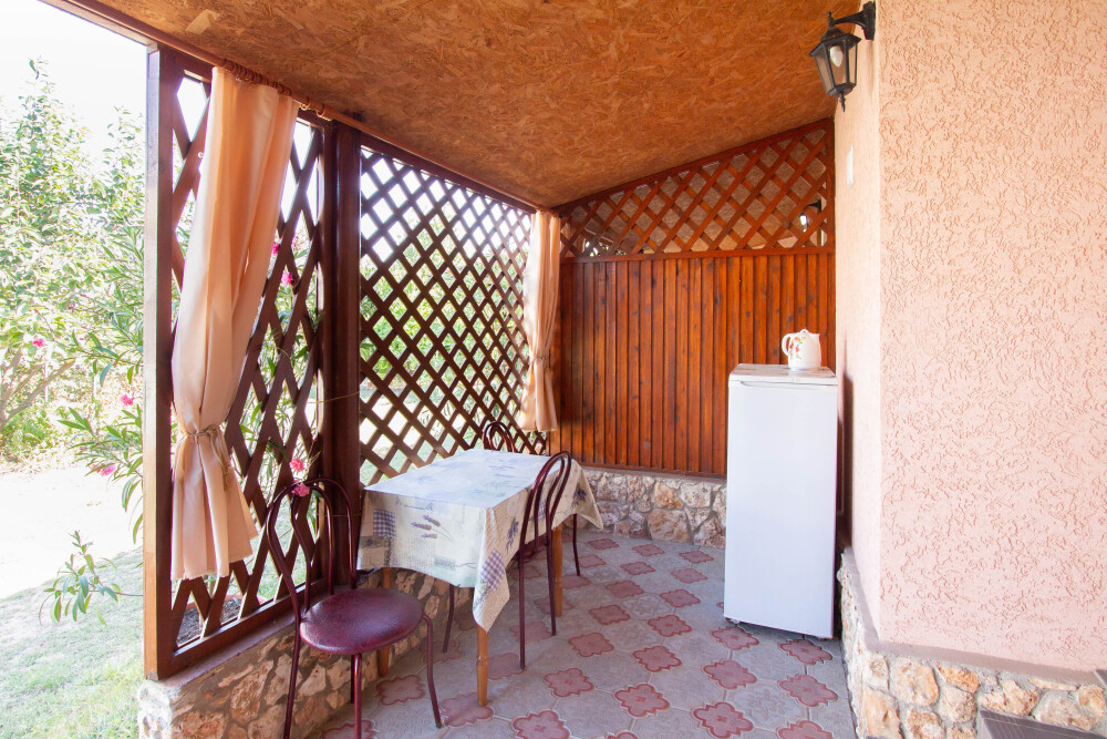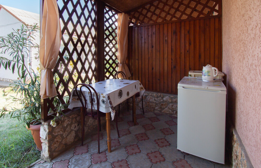 Гостевой дом «Тарханкутский дворик» располагает восьмью однокомнатными комфортными номерами в одноэтажном здании: